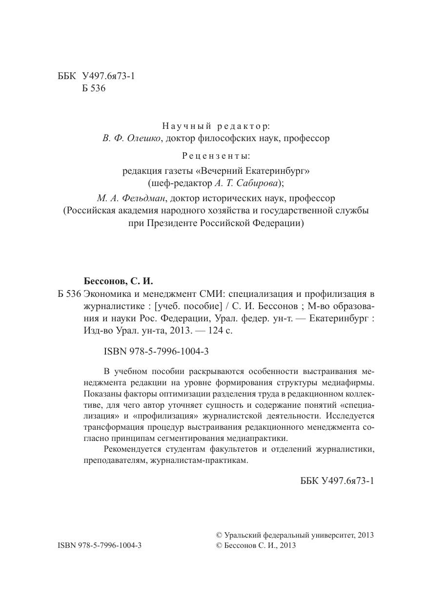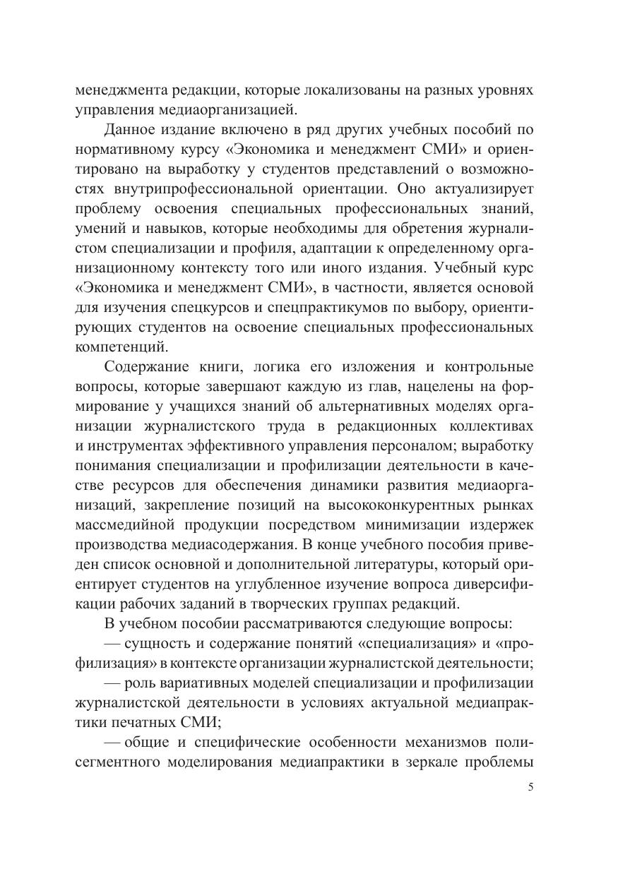 Экономика и менеджмент СМИ: специализация и профилизация в журналистике: учеб. пособие