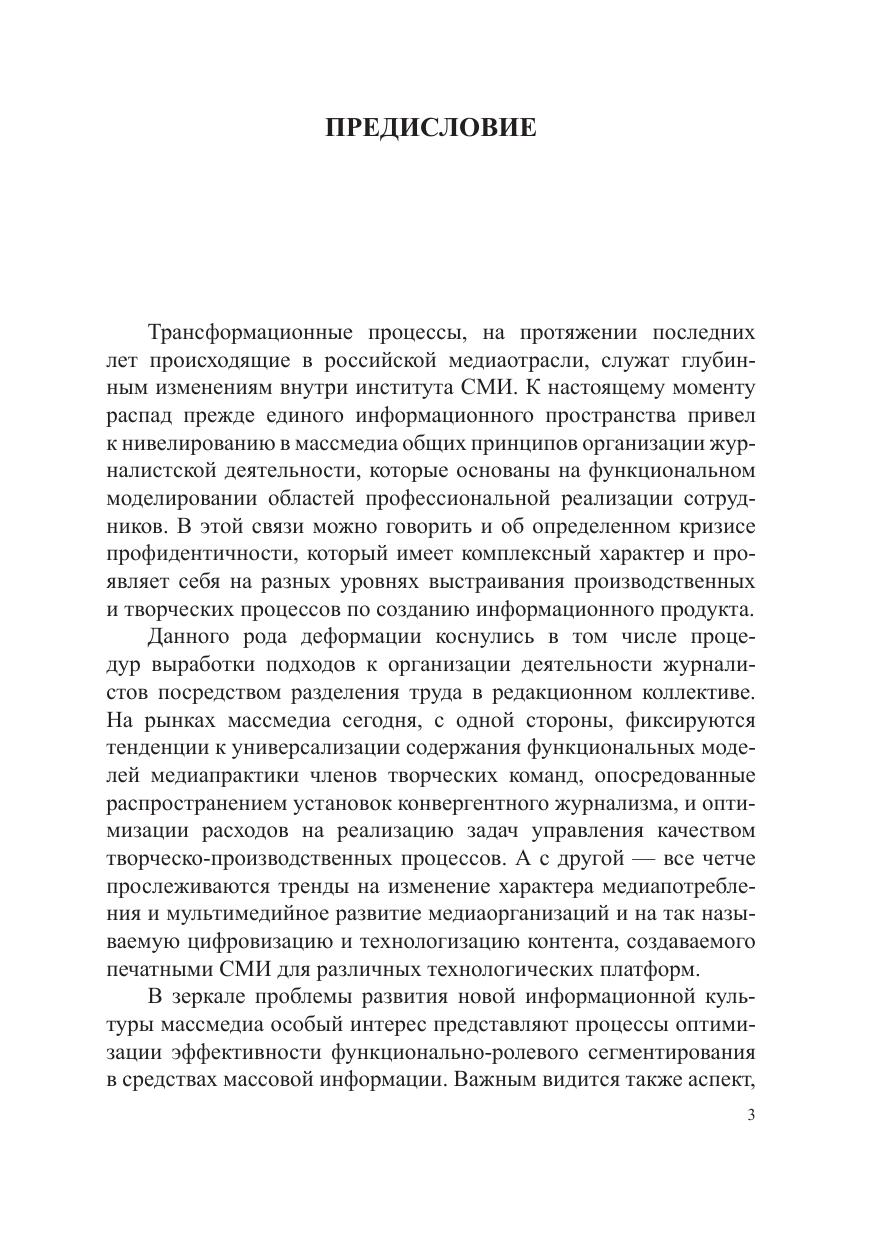 В учебном пособии раскрываются особенности выстраивания менеджмента редакции на уровне формирования структуры медиафирмы. Показаны факторы оптимизации разделения труда в редакционном коллективе, для чего автор уточняет сущность и содержание понятий «специализация » и «профилизация» журналистской деятельности. Исследуется трансформация процедур выстраивания редакционного менеджмента согласно принципам сегментирования медиапрактики. Рекомендуется студентам факультетов и отделений журналистики, преподавателям, журналистам-практикам.