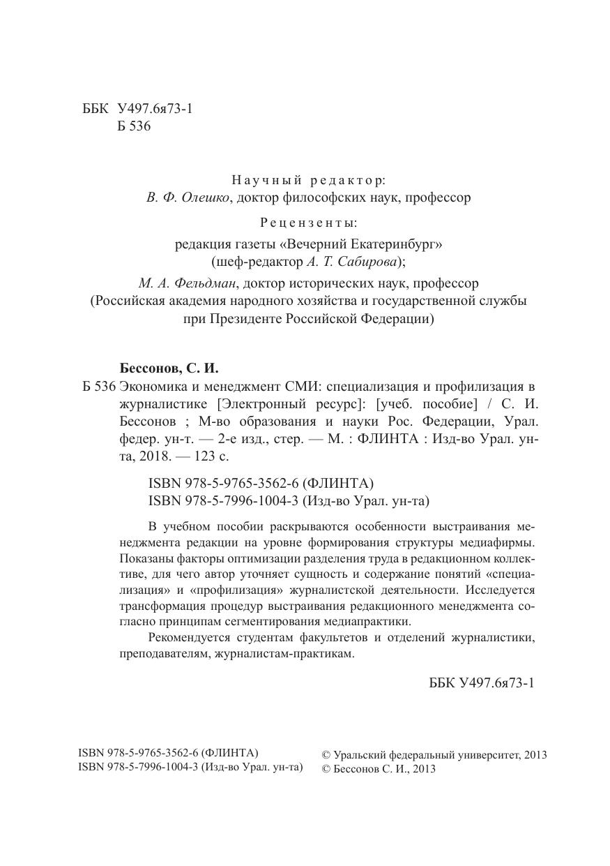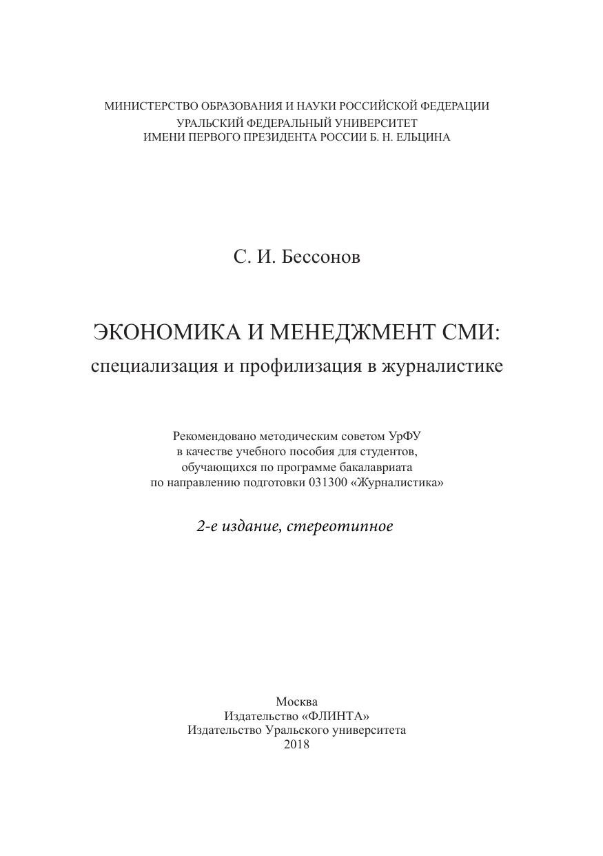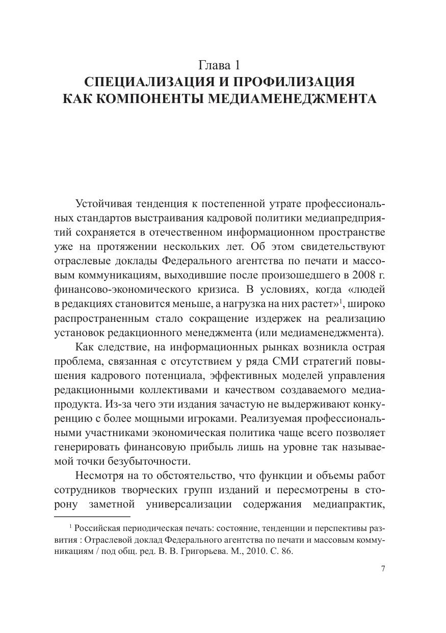 Экономика и менеджмент СМИ: специализация и профилизация в журналистике
