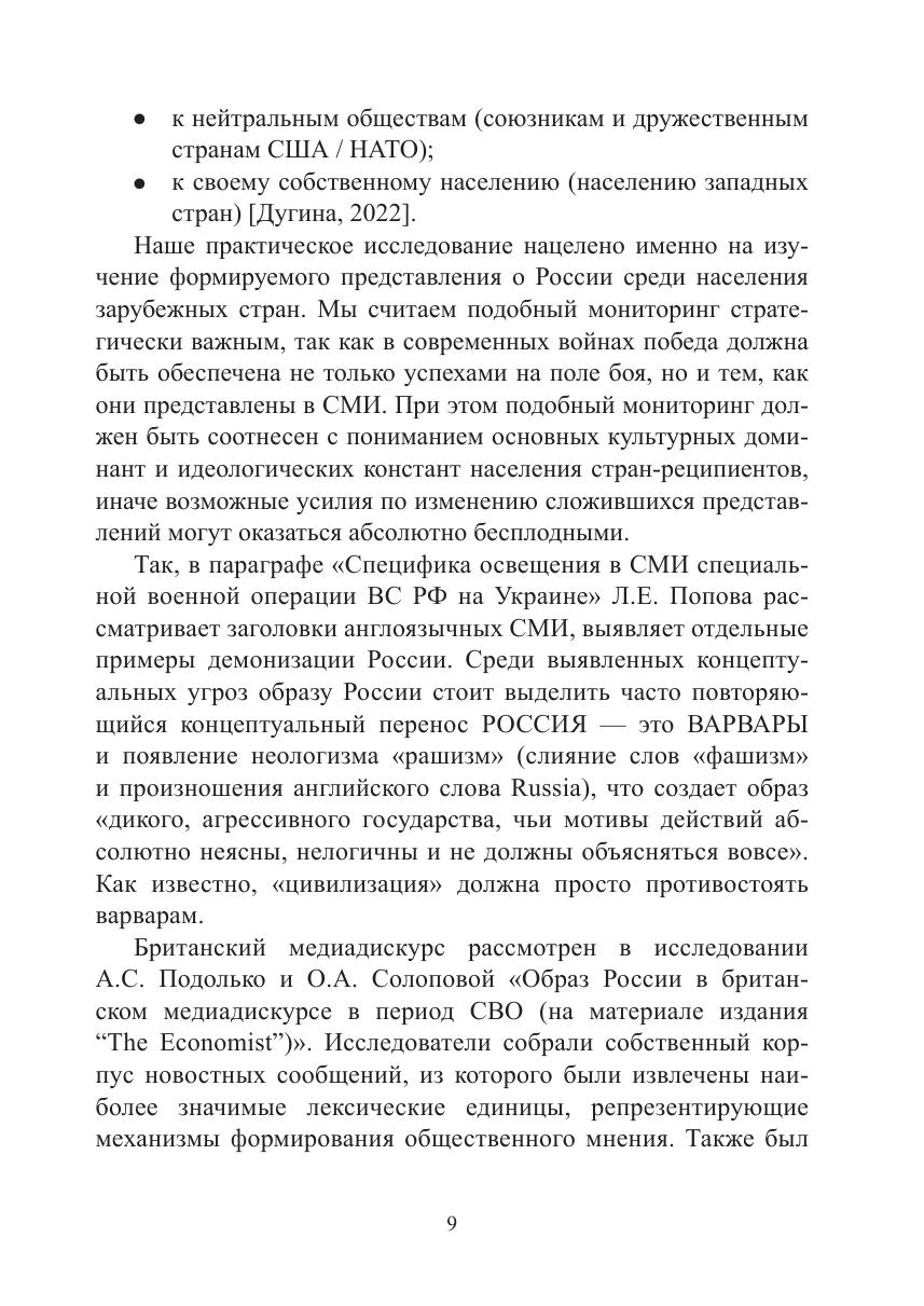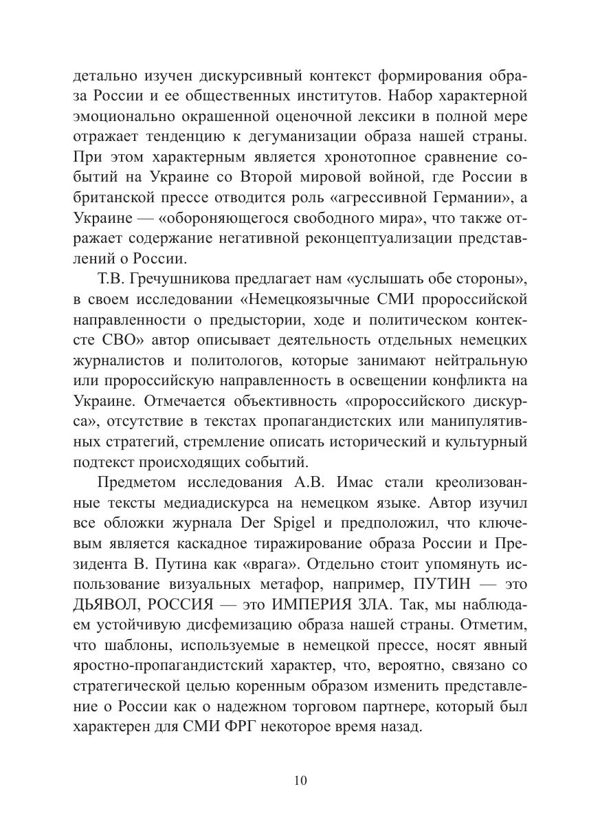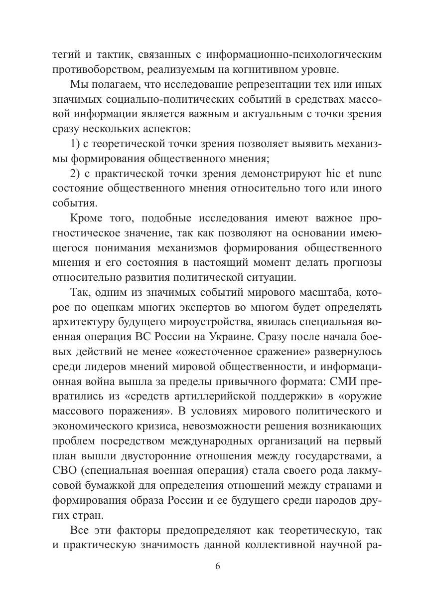 аспекты, так и фактические примеры реализации речевых тактик и стратегий информационной войны против России, а также демонстрирующие содержание общественного мнения в разных странах относительно специальной военной операции Вооруженных сил Российской Федерации. Книга предназначена для людей, профессионально интересующихся проблемами информационно-психологической безопасности: лингвистов, журналистов, общественных деятелей, работников образования, однако также будет полезна и для широкого круга читателей, интересующихся проблемами речевого воздействия и манипулирования.