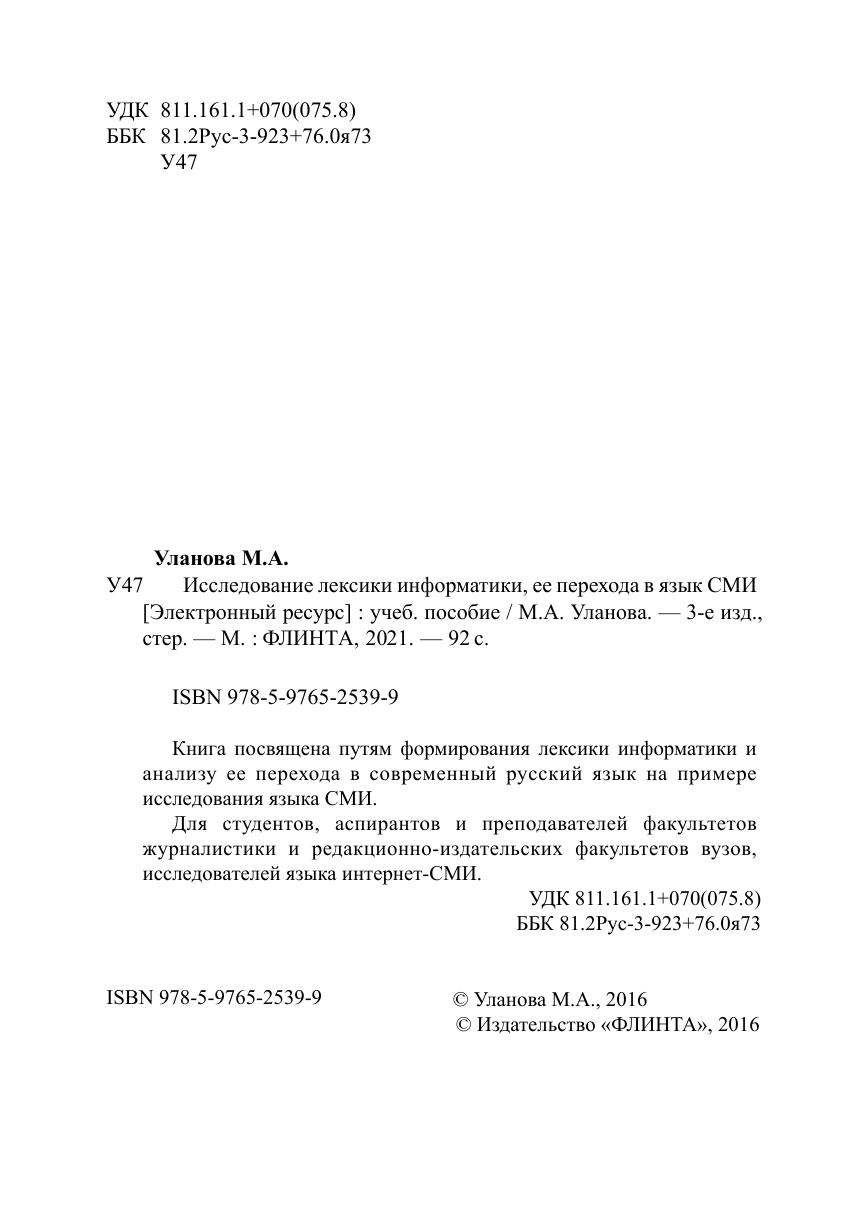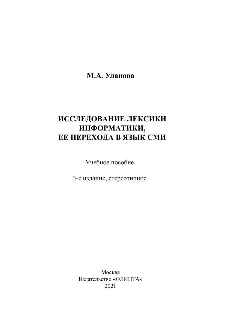 Книга посвящена путям формирования лексики информатики и анализу ее перехода в современный русский язык на примере исследования языка СМИ.