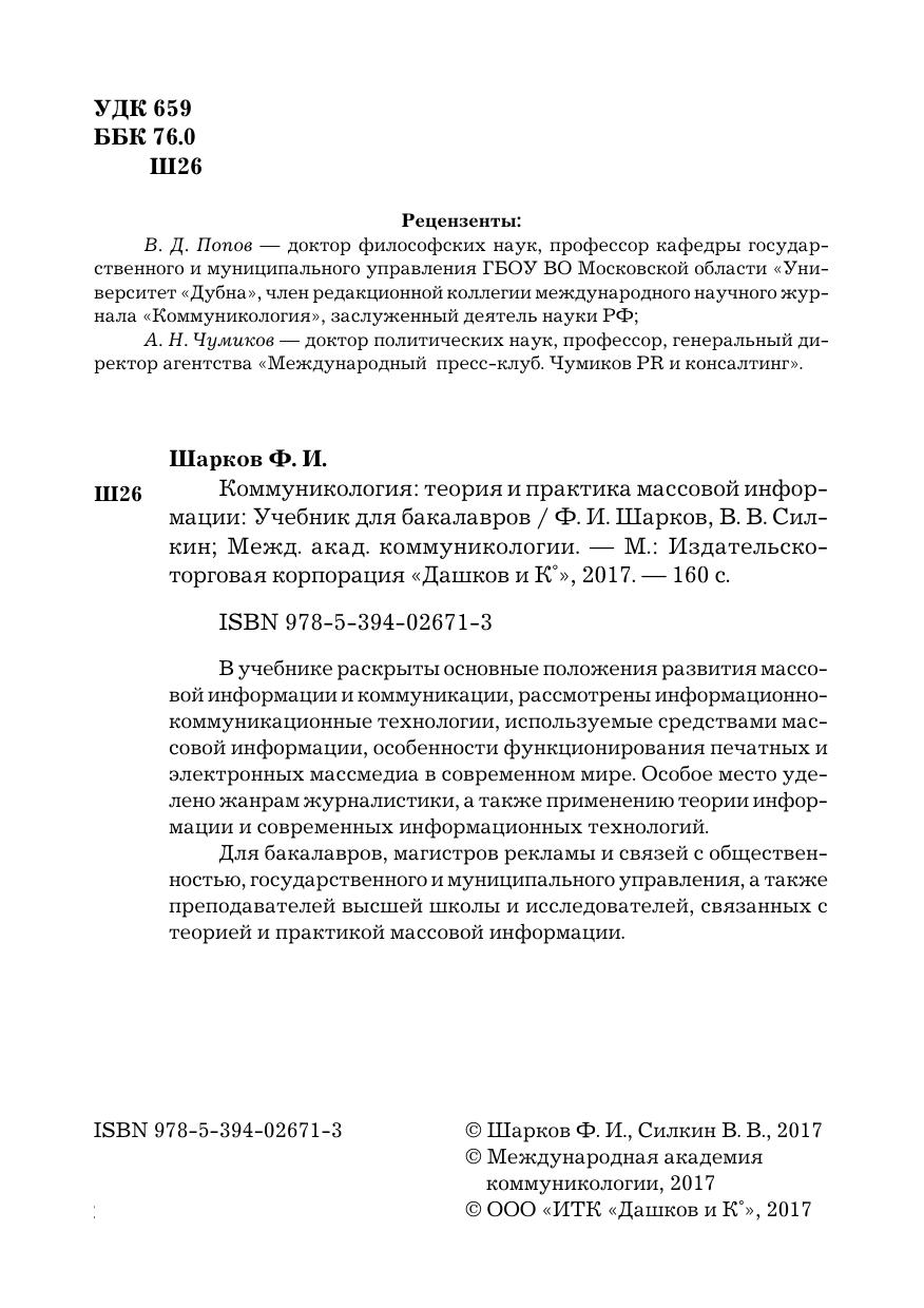 В учебнике раскрыты основные положения развития массовой информации и коммуникации, рассмотрены информационно-коммуникационные технологии, используемые средствами массовой информации, особенности функционирования печатных и электронных массмедиа в современном мире. Особое место уделено жанрам журналистики, а также применению теории информации и современных информационных технологий. Для бакалавров, магистров рекламы и связей с общественностью, государственного и муниципального управления, а также преподавателей высшей школы и исследователей, связанных с теорией и практикой массовой информации.