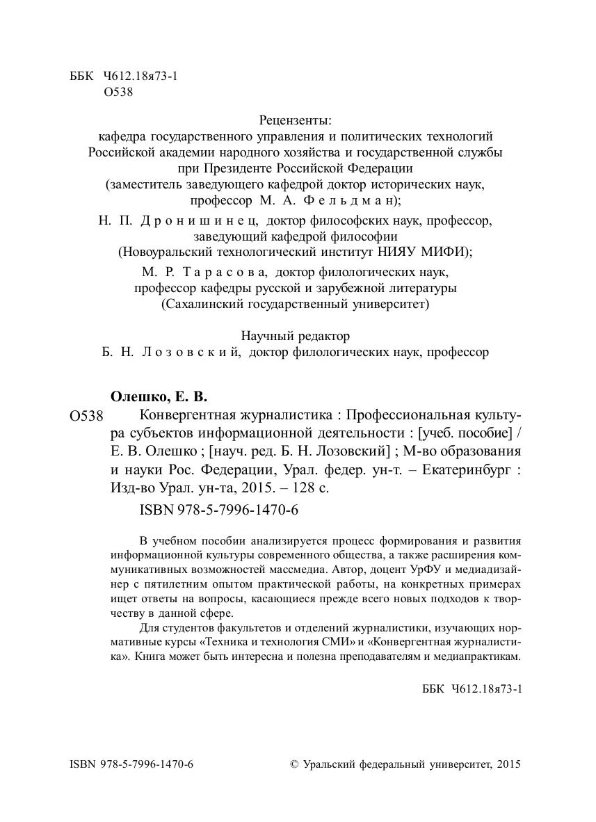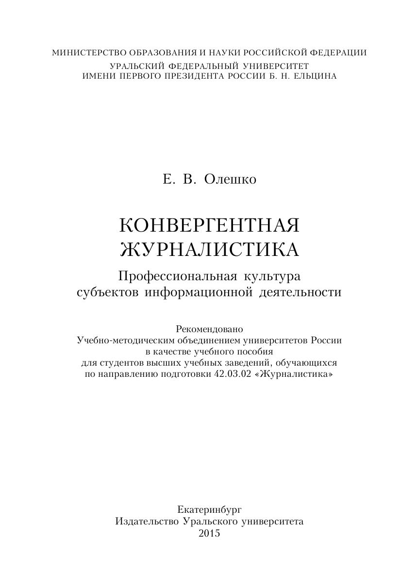 Конвергентная журналистика : Профессиональная культура субъектов информационной деятельности: учеб. пособие