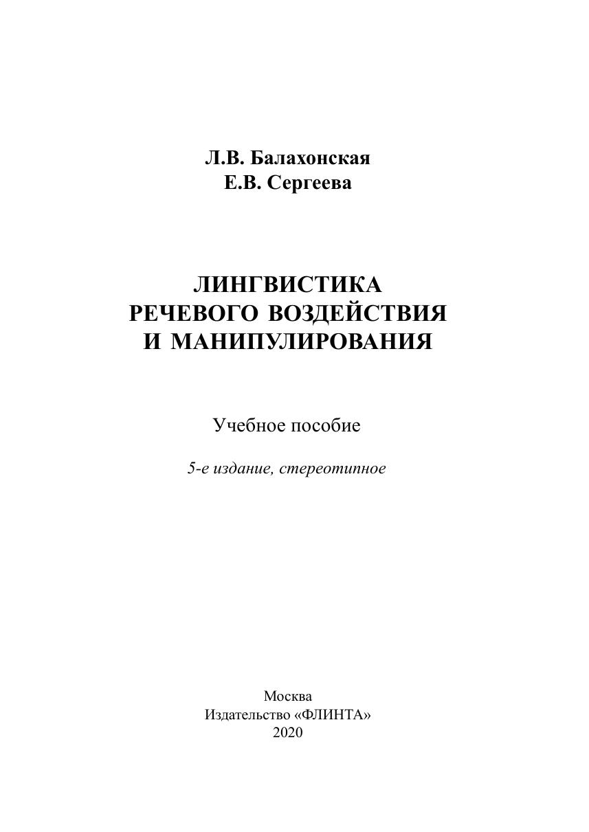 Лингвистика речевого воздействия и манипулирования
