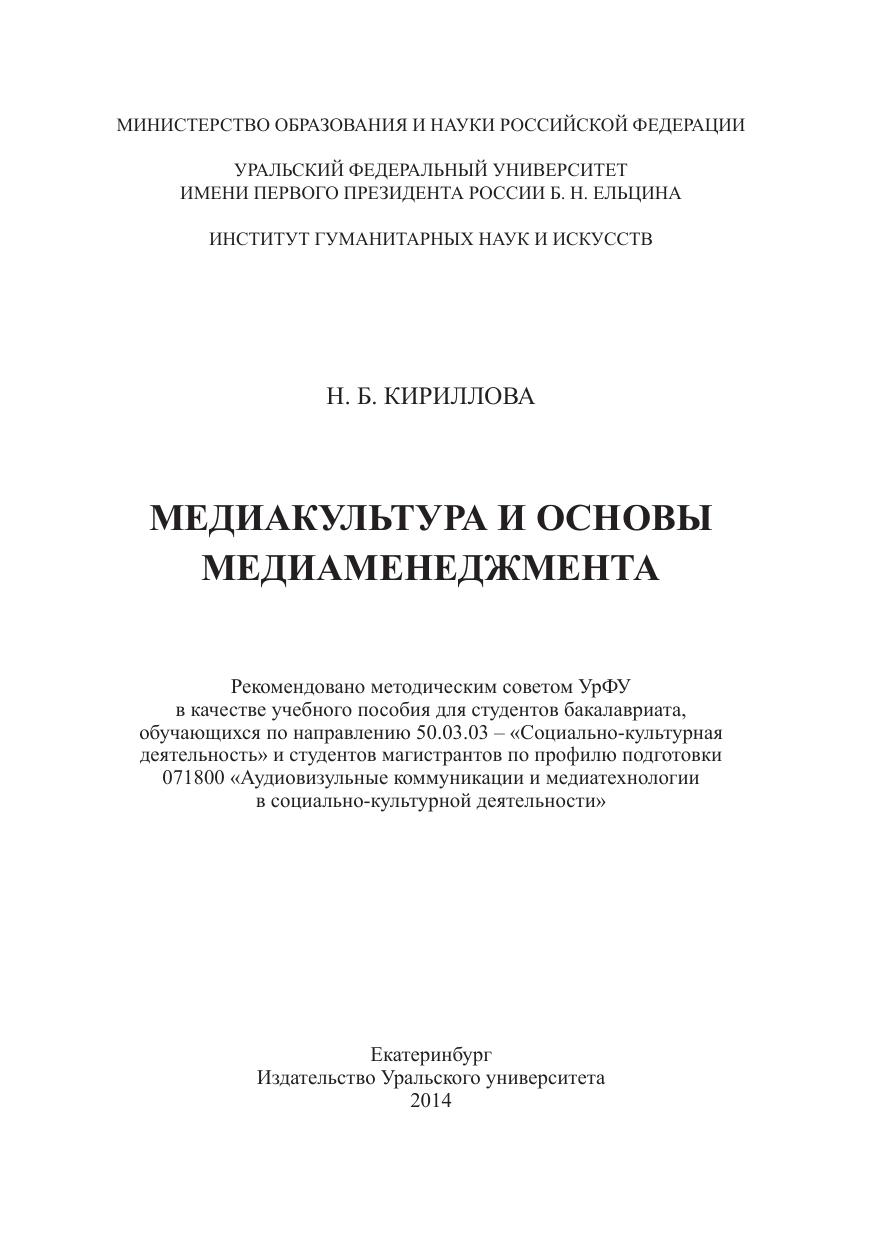 Медиакультура и основы медиаменеджмента.: учеб. пособие