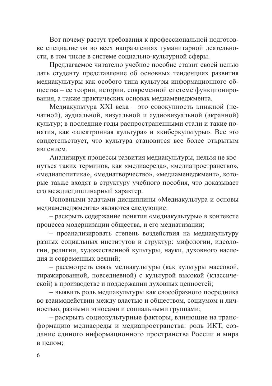 Учебное пособие обобщает теорию, историю и практику медиакультуры как особого типа культуры информационной эпохи, раскрывая не только ее специфику и эволюционные процессы медиатворчества, но и доказывая, что методологической основой изучения медиакультуры является междисциплинарный подход, опирающийся на научные принципы культурологии и семиотики, истории и теории массовой коммуникации, педагогики и менеджмента. Выявляя потенциал медиакультуры как фактора российкой модернизации, автор уделяет особое внимание вопросам медиаменеджмента и медиаобразования. Учебное пособие адресовано студентам бакалавриата, обучающихся по направлению «Социально-культурная деятельность», и студентам магистратуры по профилю подготовки «Аудиовизульные коммуникации и медиатехнологии в социально-культурной деятельности».