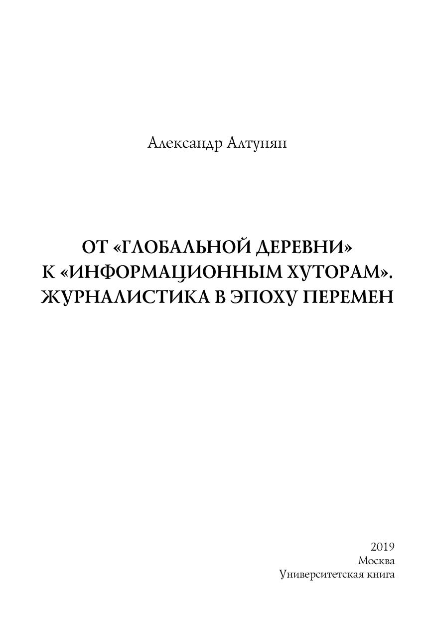 От «глобальной деревни» к «информационным хуторам». Журналистика в эпоху перемен
