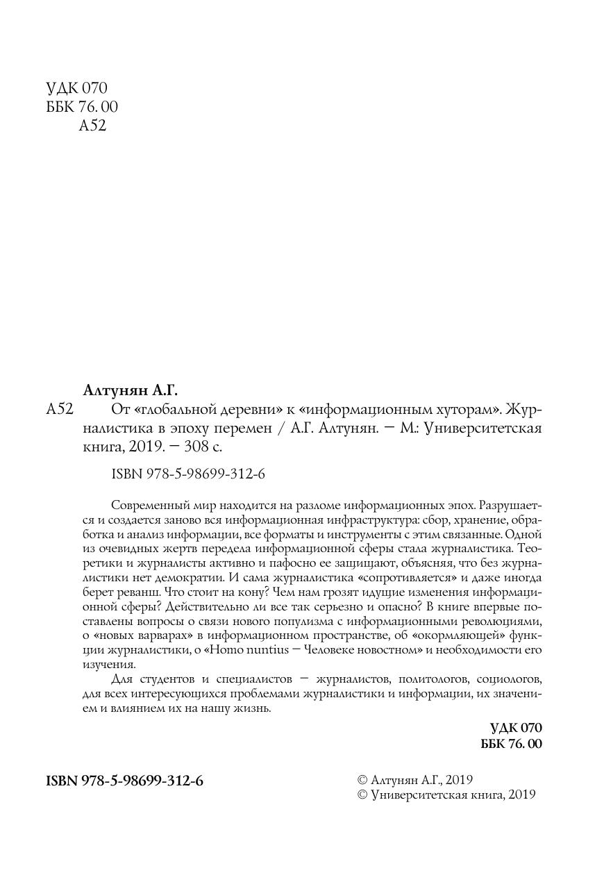 В книге впервые поставлены вопросы о связи нового популизма с информационными революциями, о «новых варварах» в информационном пространстве, об «окормляющей» функции журналистики, о «Homo nuntius – Человеке новостном» и необходимости его изучения. Для студентов и специалистов – журналистов, политологов, социологов, для всех интересующихся проблемами журналистики и информации, их значением и влиянием их на нашу жизнь.