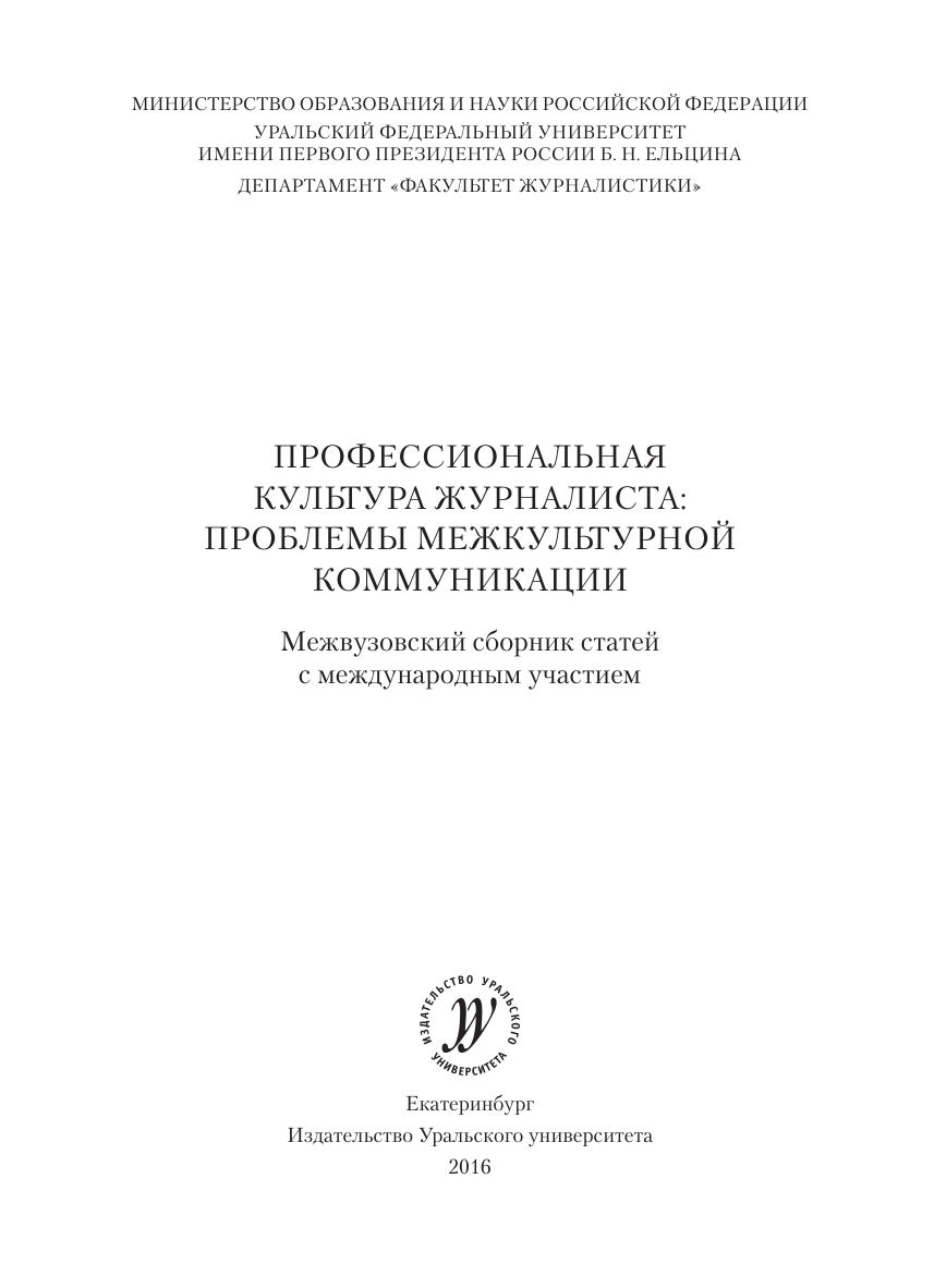 Профессиональная культура журналиста: проблемы межкультурной коммуникации : межвуз. сб. ст. с междунар. участием