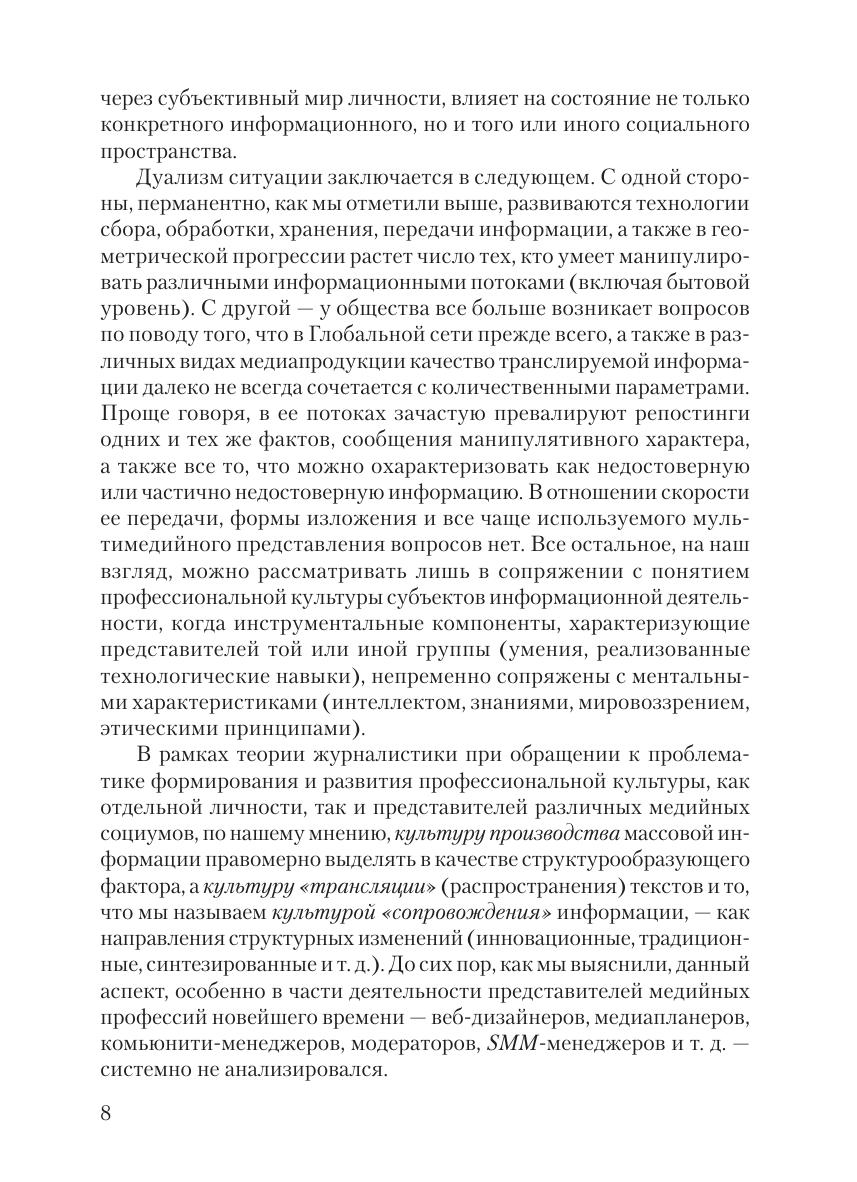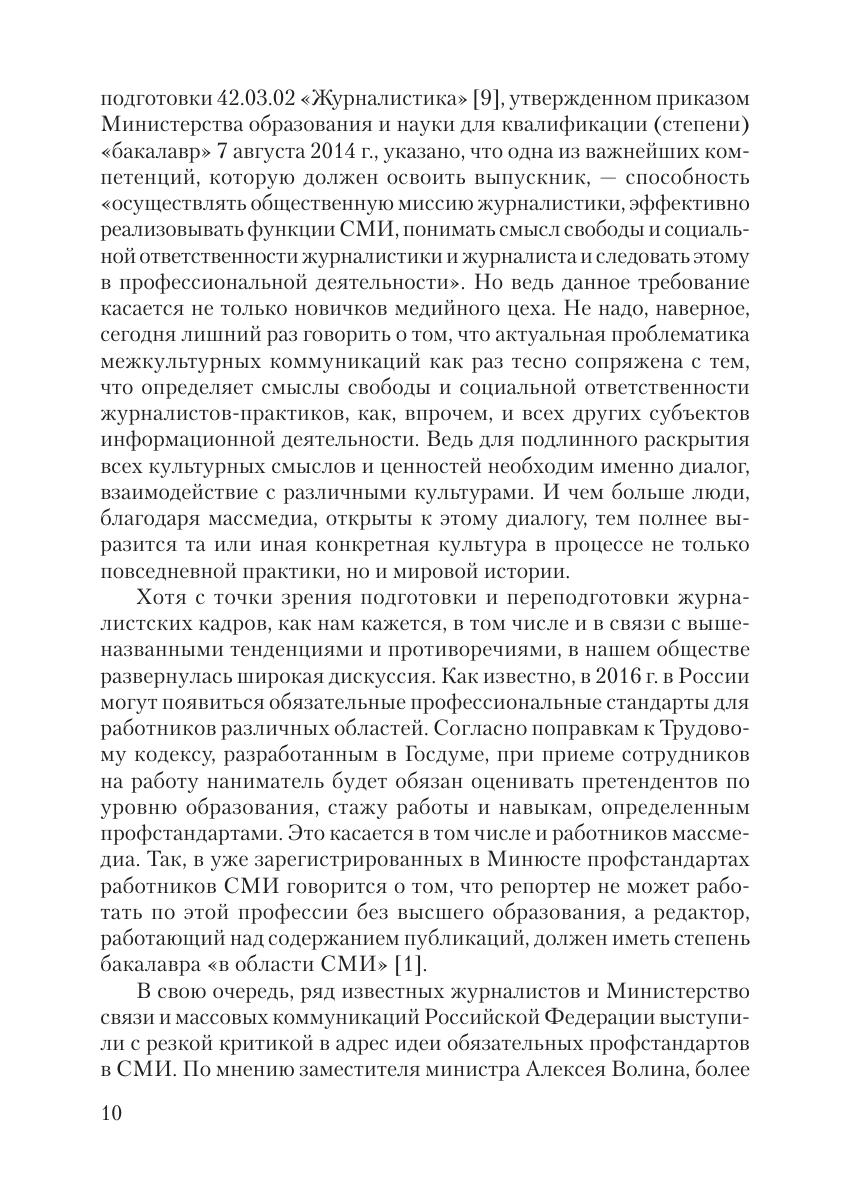 В книге представлены статьи ученых из ведущих отечественных вузов, готовящих журналистов, зарубежных коллег, а также практиков по проблематике межкультурных коммуникаций. В пространстве массовой коммуникации сегодня не только формируется и сохраняется культура, но и трансформируется социальная реальность, построенная на ее фундаменте. Каким образом журналистское сообщество может содействовать эффективности образовательной и самообразовательной деятельности с точки зрения формирования мультикультурализма личности? В какой степени влияют на этот процесс новейшие информационные технологии и фактор глобализации? Этим и другим не менее актуальным вопросам посвящен данный сборник. Он продолжает серию из четырех книг, в которых системно рассматривается актуальная проблематика формирования и развития профессиональной культуры журналистов. Для студентов, аспирантов и преподавателей факультетов и отделений журналистики, связей с общественностью, политологии, работников средств массовой информации, а также всех тех, кто хочет понять закономерности организации межкультурных коммуникаций при посредстве массмедиа.