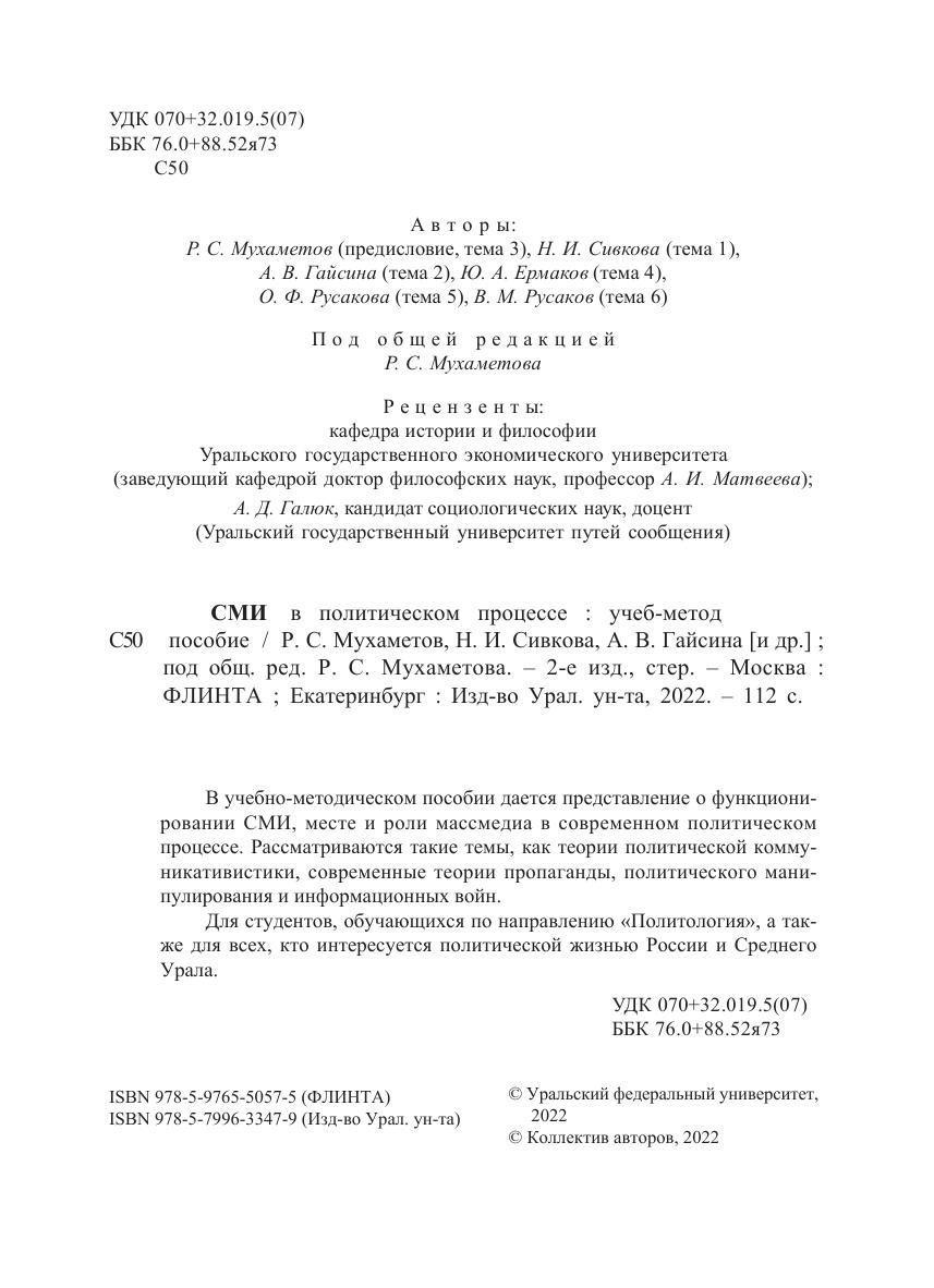 В учебно-методическом пособии дается представление о функционировании СМИ, месте и роли массмедиа в современном политическом процессе. Рассматриваются такие темы, как теории политической коммуникативистики, современные теории пропаганды, политического манипулирования и информационных войн.