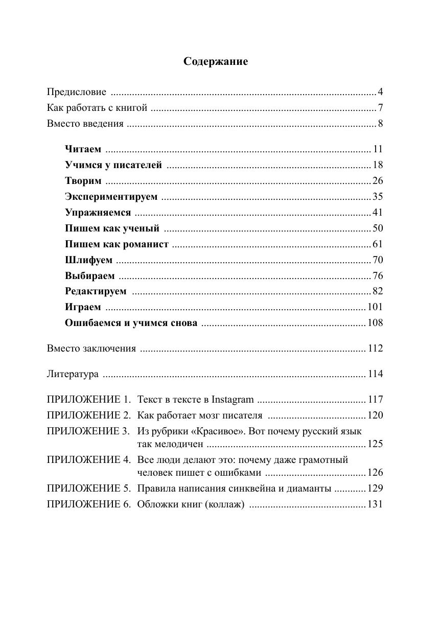 Пособие содержит фрагменты книг, связанных с осмыслением и освоением писательского труда, а также вопросы и задания к ним. Книга состоит из двенадцати разделов, объединенных идеей определенного коммуникативного действия в процессе создания текста.