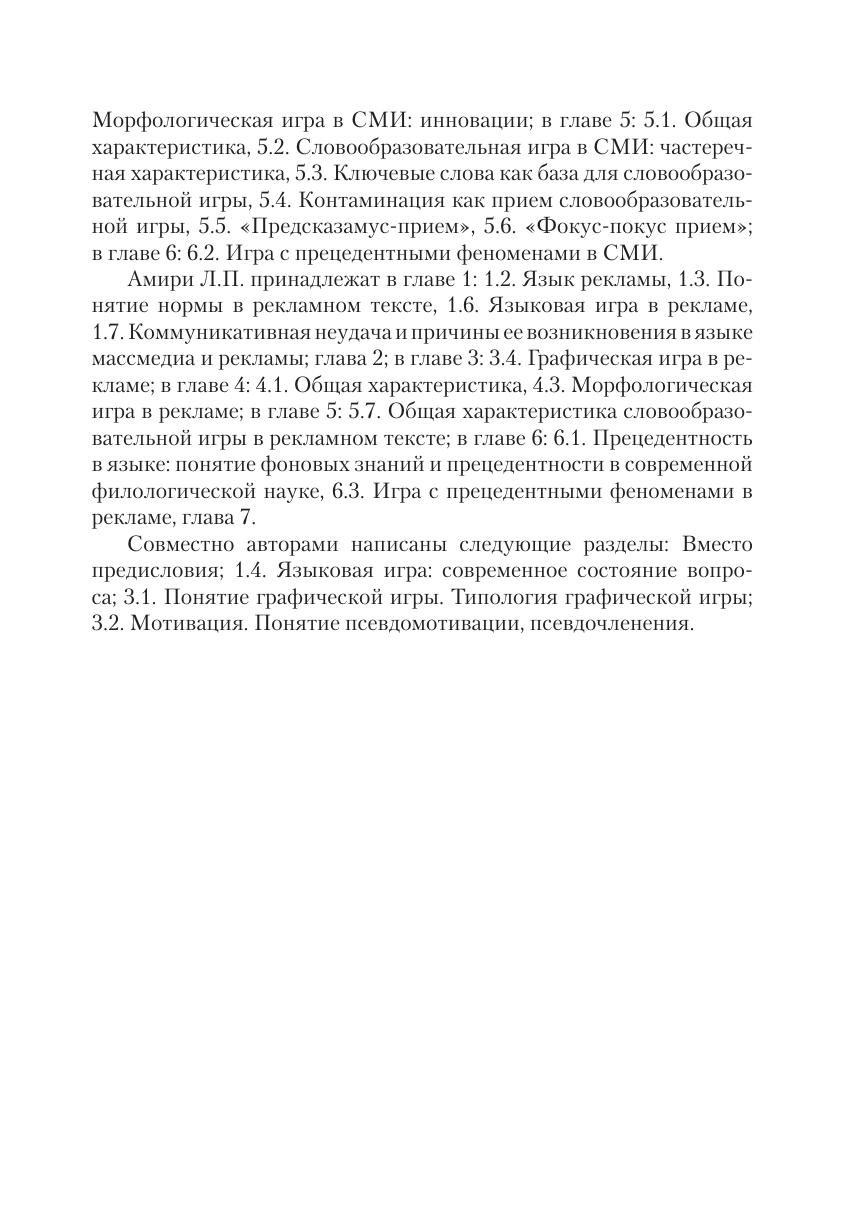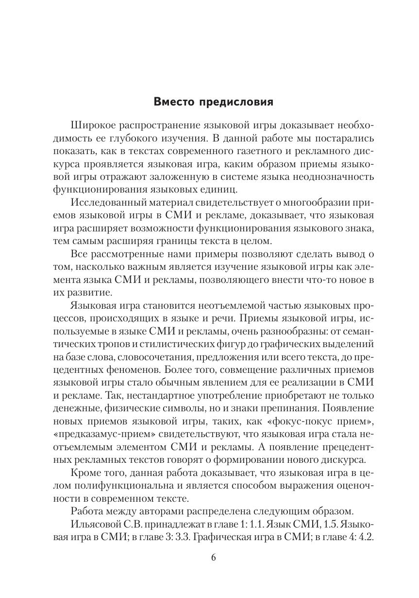 Книга представляет собой первую академическую работу по языковой игре в СМИ и рекламе конца XX — начала XXI века, содержащую богатый систематизированный материал по теме, представляющей интерес для самого широкого круга читателей. В основе издания лежит принципиально новое исследование всего арсенала языковых средств, используемых в языковой игре на всех языковых уровнях в СМИ и рекламе. Материал иллюстрирован многочисленными примерами и разъяснениями.