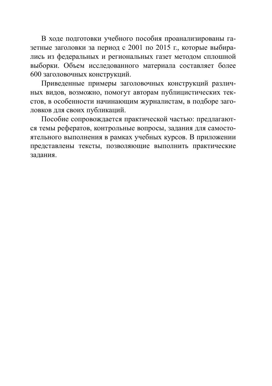 2000-х годов. Охвачены федеральные и региональные издания ряда округов Российской Федерации. Для студентов, обучающихся по направлению подготовки бакалавров 42.03.02 — Журналистика и осваивающих дисциплины