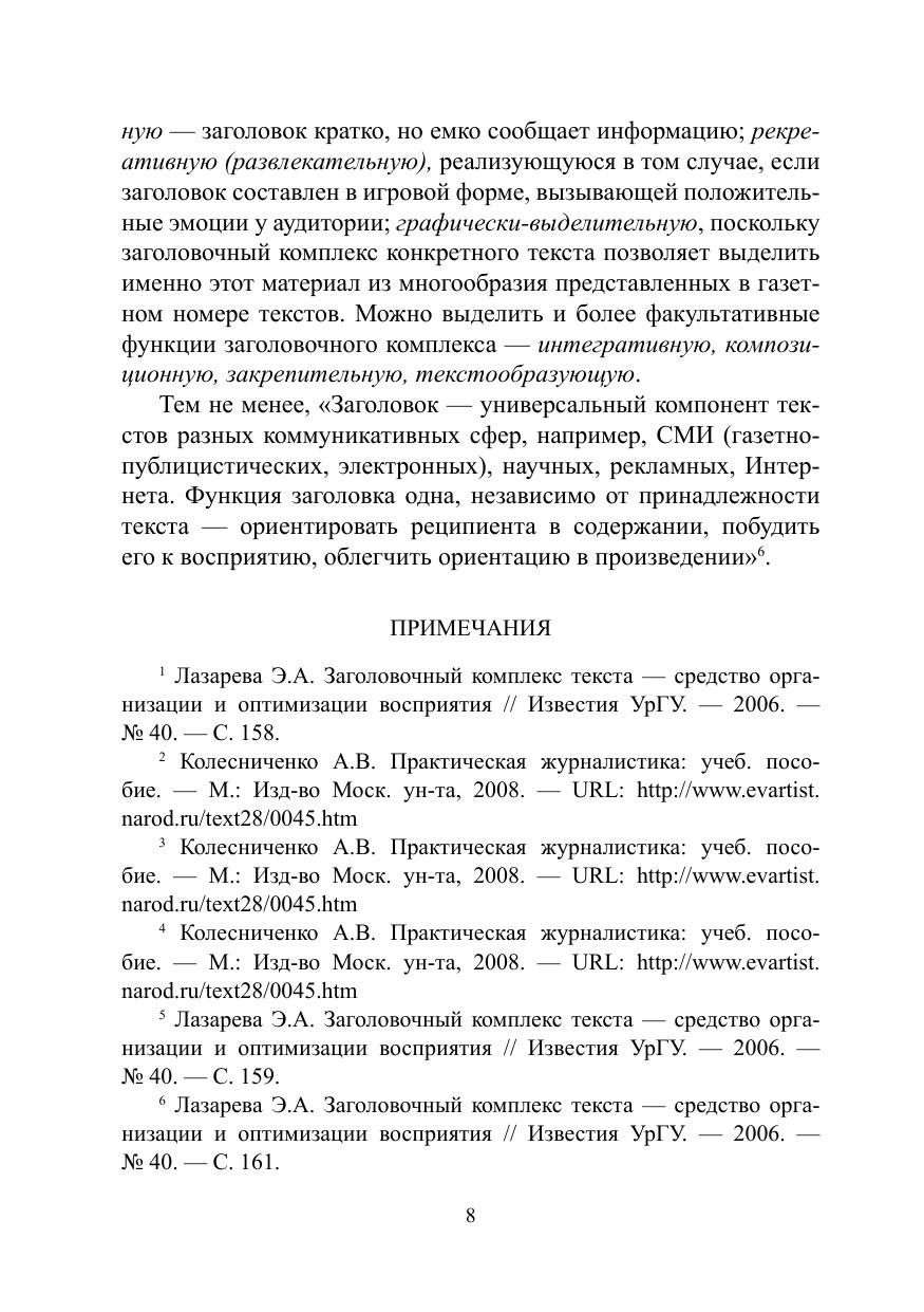 Пособие посвящено определению видов и функций заголовочных комплексов в современной газете. Для наглядности привлекается солидная эмпирическая база — газетные публикации в изданиях