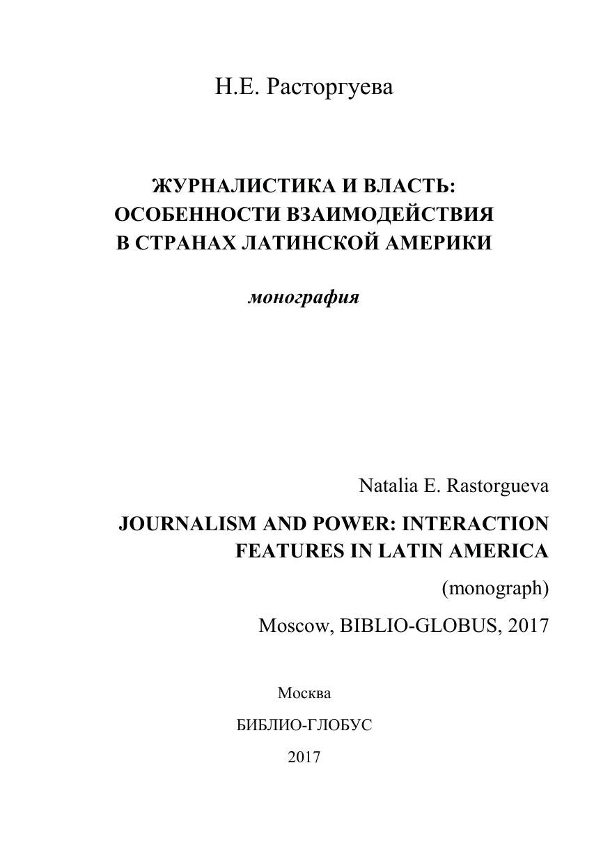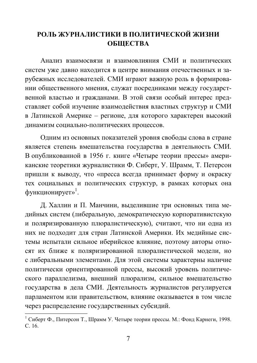 Журналистика и власть: особенности взаимодействия в странах Латинской Америки: монография