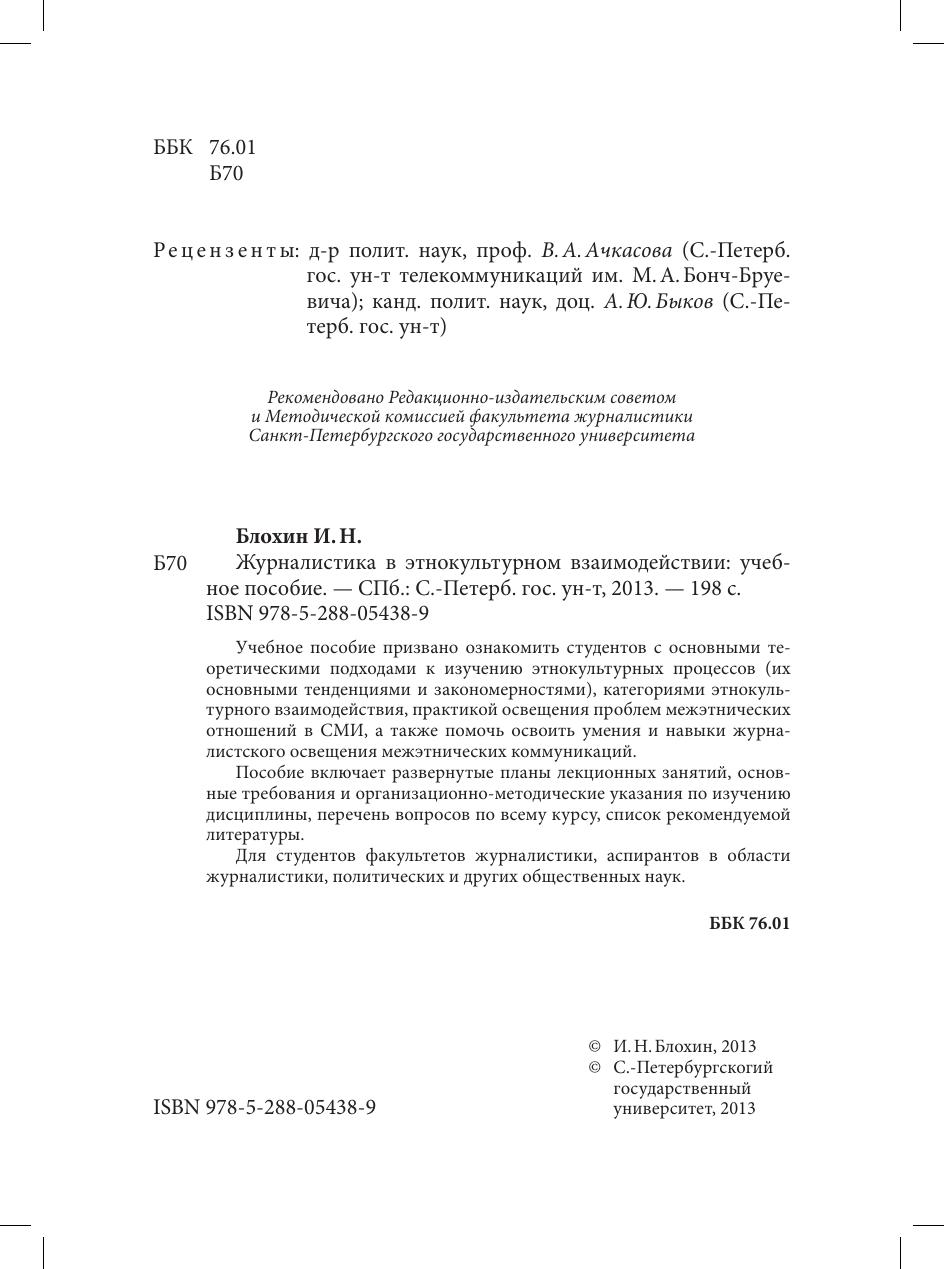 Учебное пособие призвано ознакомить студентов с основными теоретическими подходами к изучению этнокультурных процессов (их основными тенденциями и закономерностями), категориями этнокультурного взаимодействия, практикой освещения проблем межэтнических отношений в СМи, а также помочь освоить умения и навыки журналистского освещения межэтнических коммуникаций.