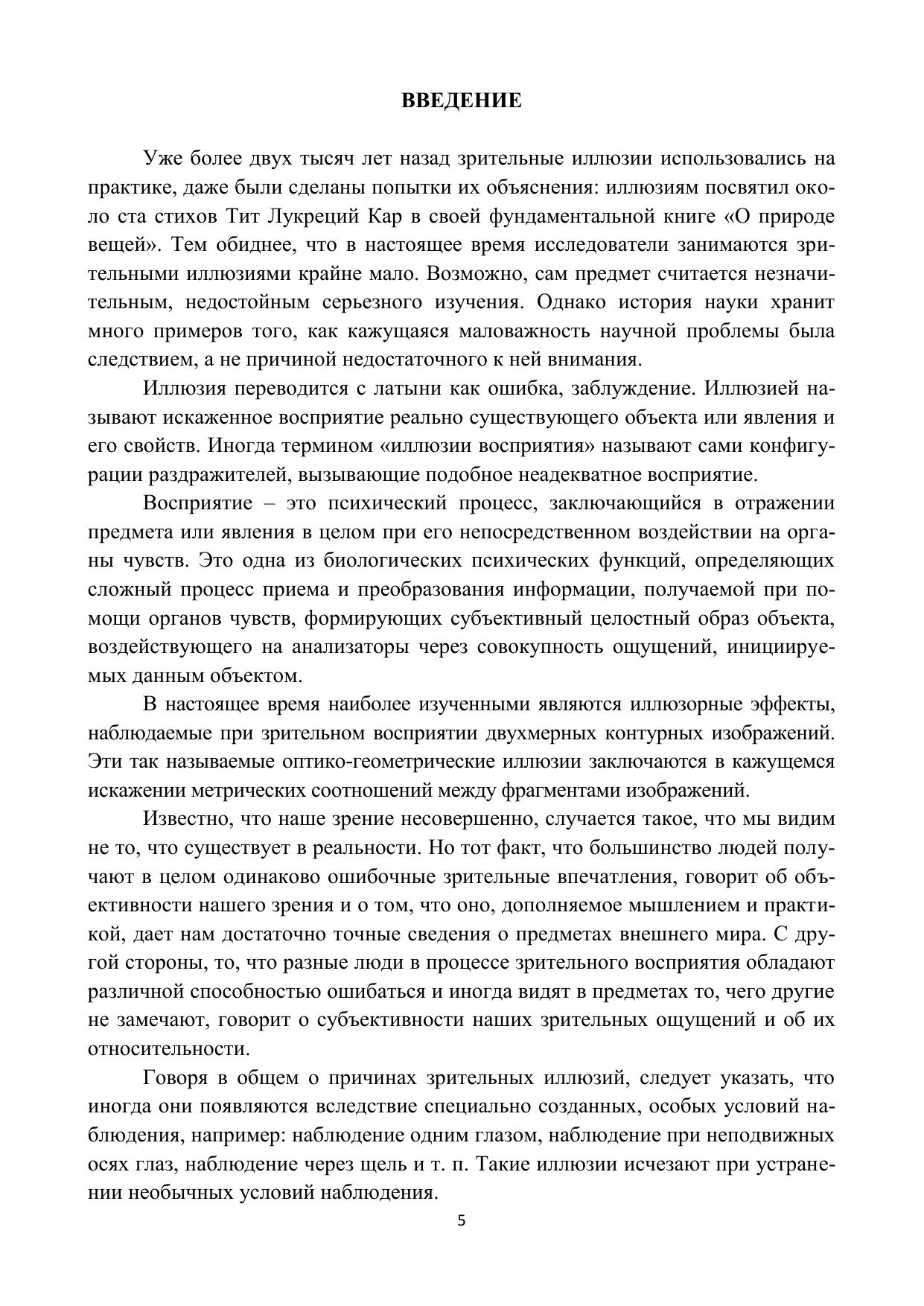 Учебное пособие разработано в помощь проведения учебно-научной деятельности, связанной с адекватной визуальной оценкой объектов, в том числе и с использованием световой микроскопии. Излагаются вопросы, связанные с различными зрительными иллюзиями, возникающими в исследовательской практике и в графике. Приведены разнообразные примеры всех основных зрительных иллюзий. Учебное пособие предназначено в первую очередь для студентов и магистрантов, изучающих графику, телевидение, тележурналистику, мультимедийные системы, психофизиологию, а также всем, интересующимся вопросами зрительного восприятия.