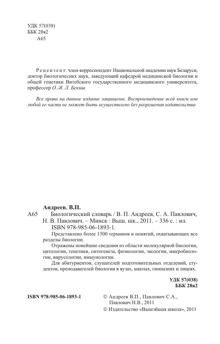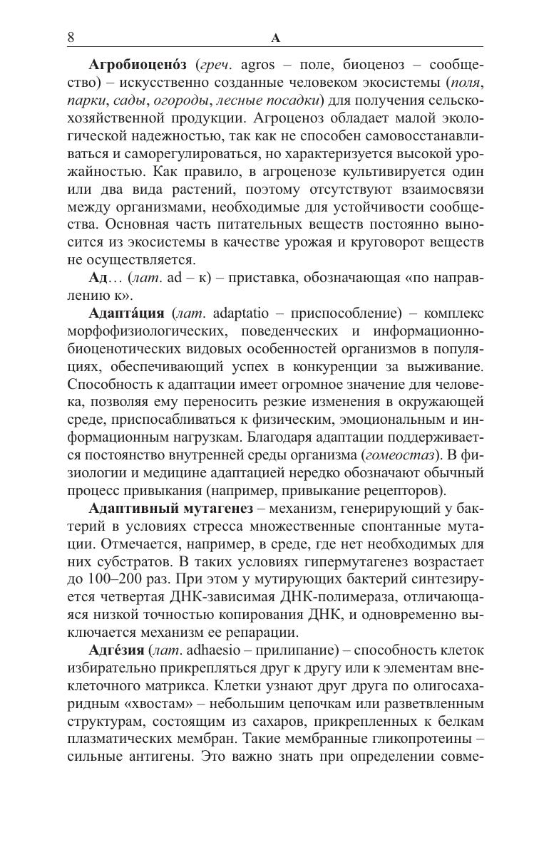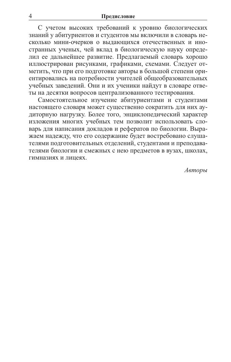 Содержит более 1500 терминов и понятий, охватывающих все разделы биологии. Отражены новейшие сведения из области молекулярной биологи, цитологии, генетики, онтогенеза, физиологии, экологии, микробиологии, вирусологии, иммунологии. Для абитуриентов, слушателей подготовительных отделений, студентов, преподавателей биологии в вузах, школах, гимназиях и лицеях.