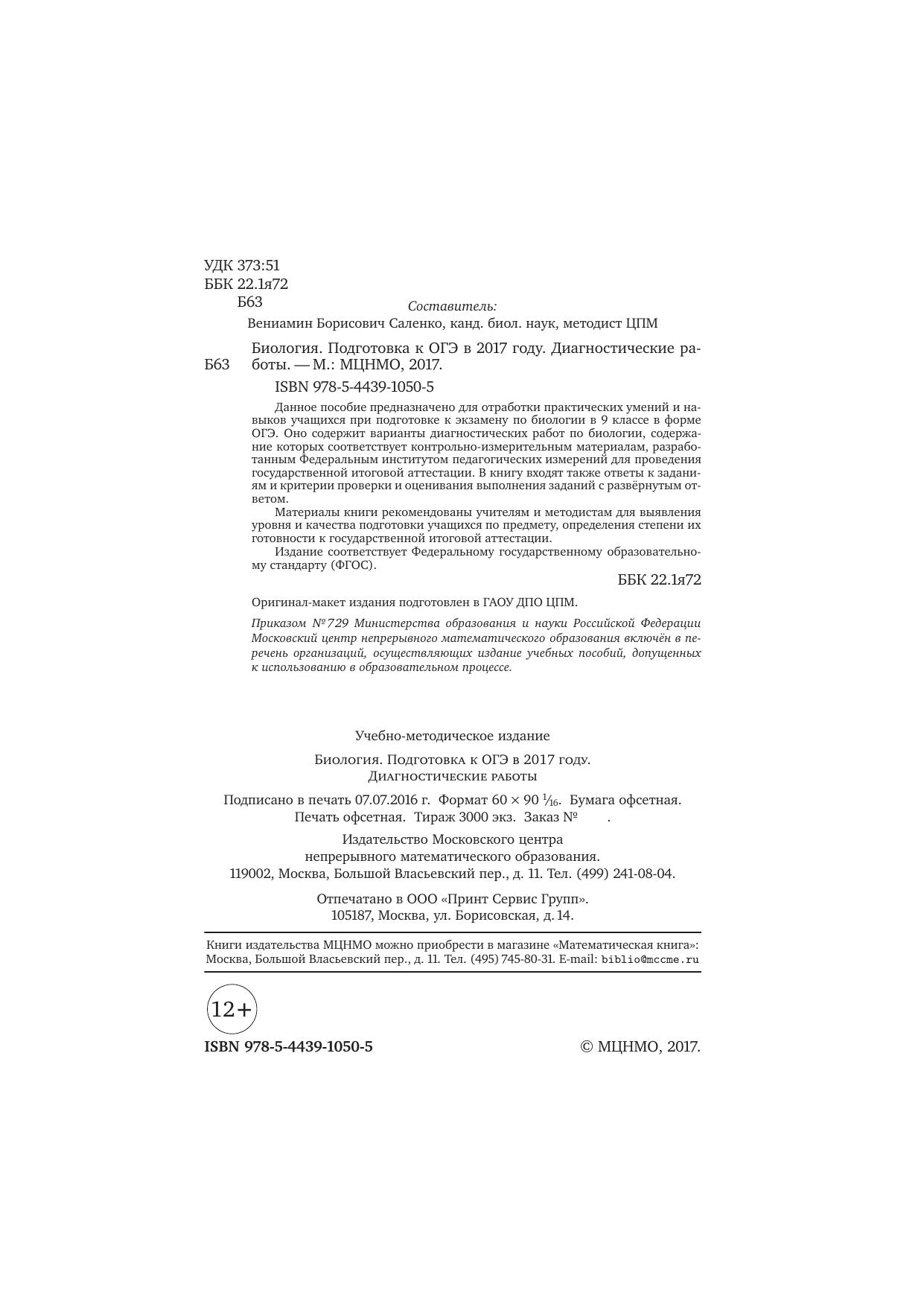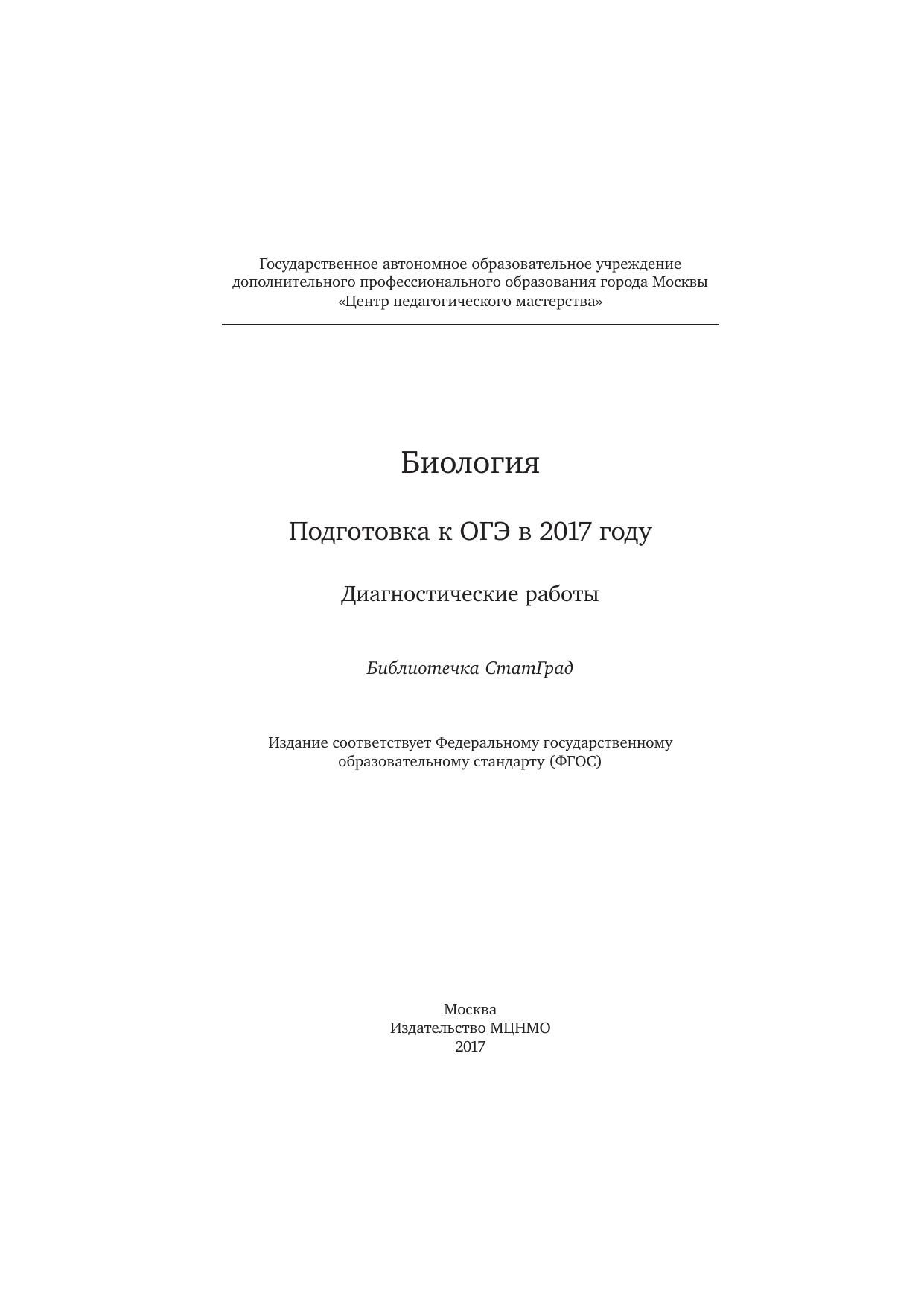 Биология. Подготовка к ОГЭ в 2017 году. Диагностические работы