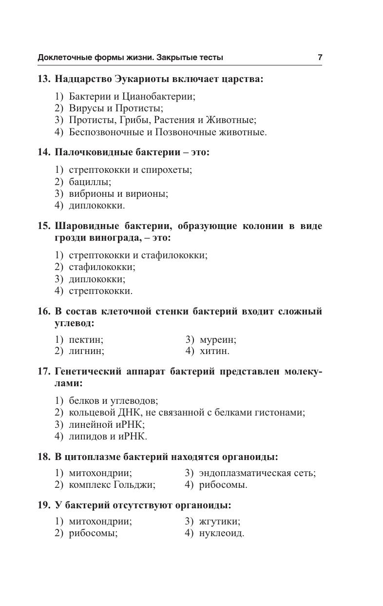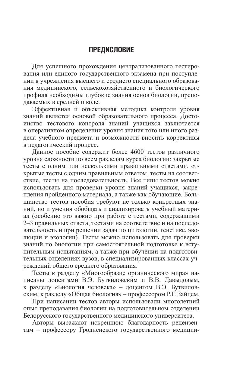Содержит более 4600 тестов различного уровня сложности: закрытые тесты с одним и несколькими правильными ответами, открытые тесты, тесты на соответствие и тесты на последовательность. Тесты охватывают все разделы школьного курса по биологии, не заменимы при подготовке к вступительным испытаниям, максимально приближены к тестам централизованного тестирования. Для абитуриентов вузов и ССУЗов. Будет полезно слушателям подготовительных курсов вузов, учащимся и преподавателям школ, гимназий, лицеев.