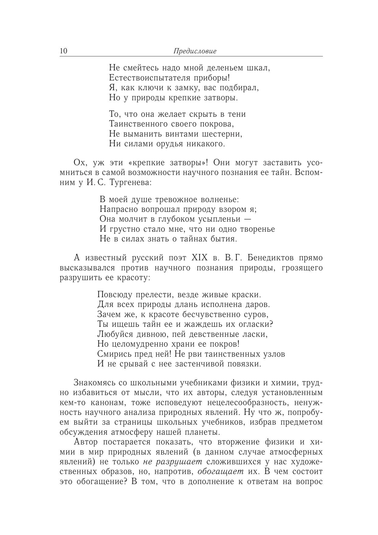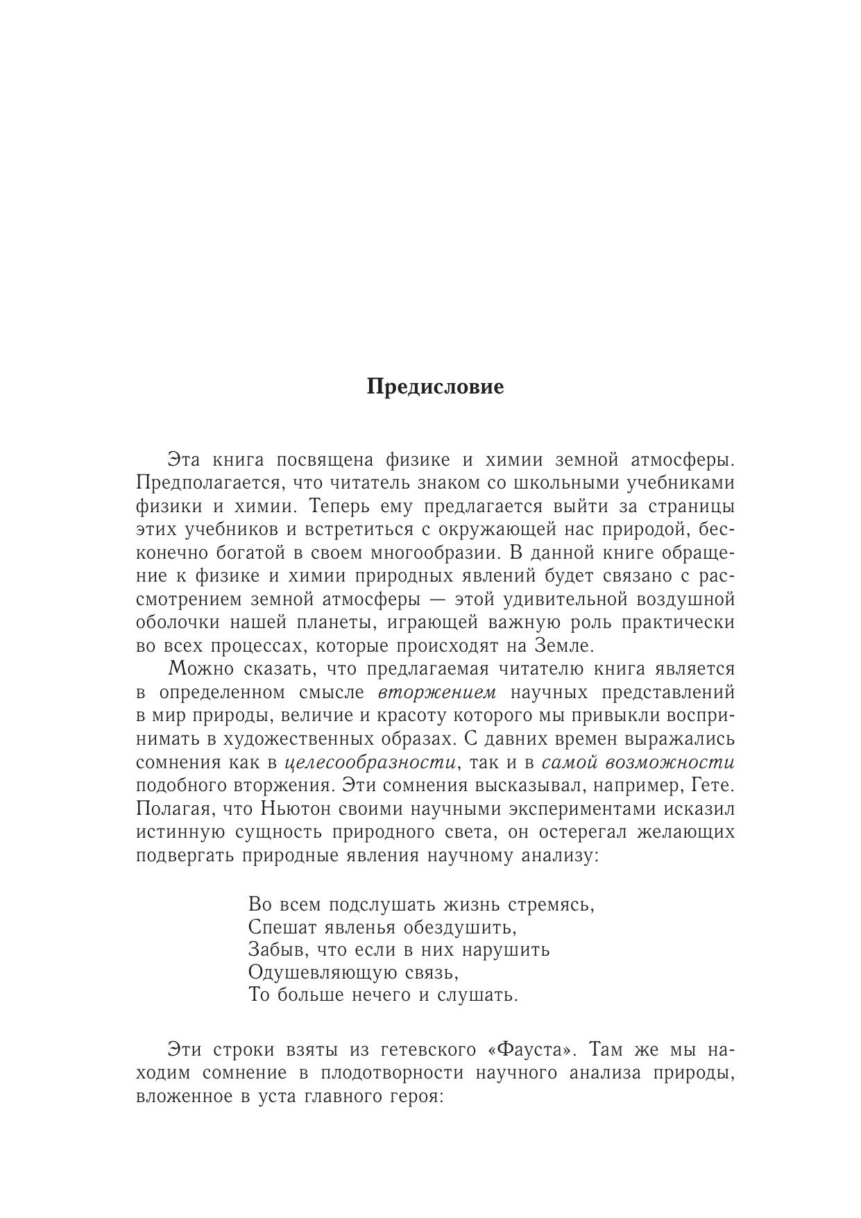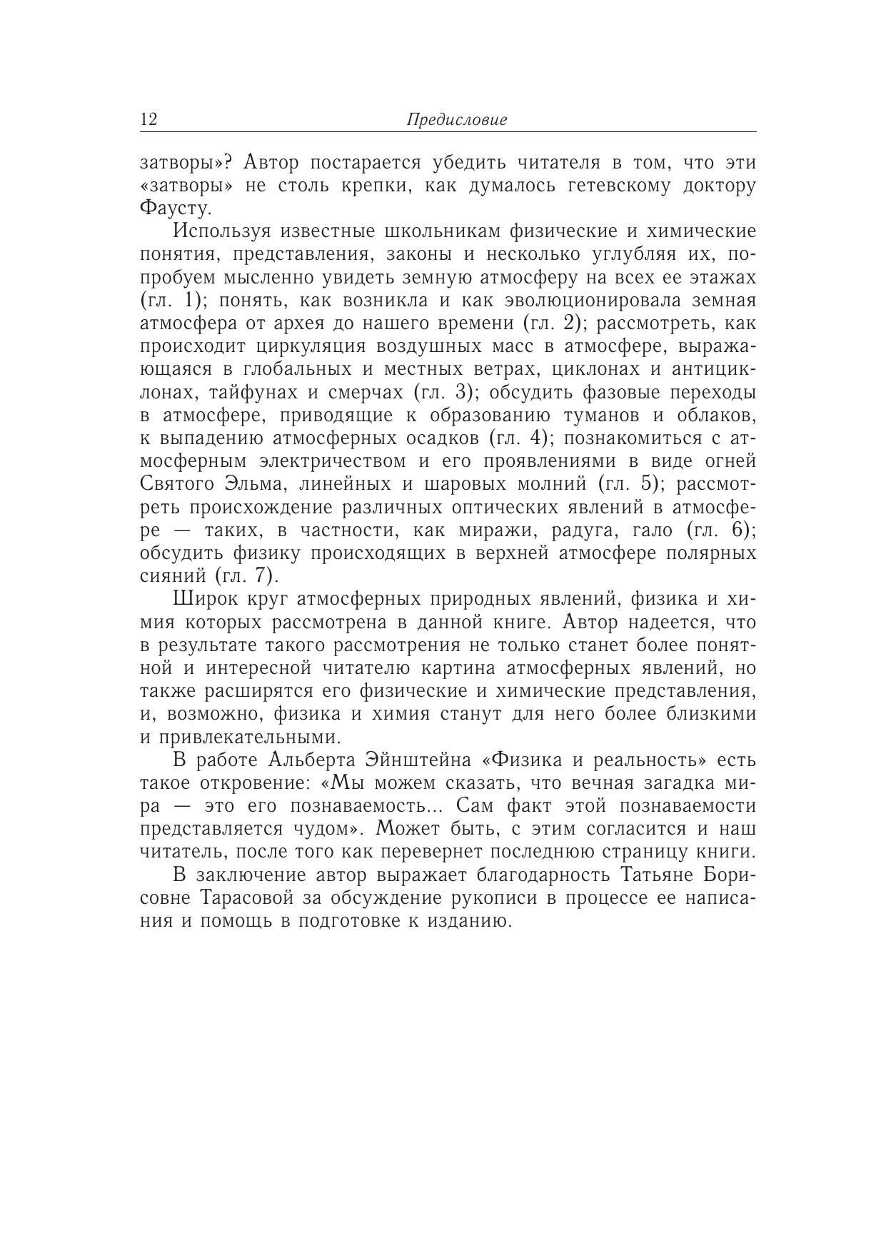 Книга идет под рубрикой «За страницами учебников физики и химии». На достаточно популярном уровне систематизированно рассмотрены физика и химия земной атмосферы, а также ее возникновение и эволюция от архея до нашего времени. Специальными главами представлены: циркуляция воздушных масс в атмосфере (глобальные и местные ветры, циклоны и антициклоны, тайфуны и смерчи), фазовые переходы в атмосфере (образование туманов и облаков и выпадение осадков), электричество в атмосфере (грозы, линейные и шаровые молнии). Отдельно рассмотрены оптические явления в атмосфере (зеленый луч, миражи, радуга, гало) и небесные сполохи в верхней атмосфере (взаимодействие солнечного ветра с магнитосферой Земли, магнитные бури, природа полярных сияний).Может использоваться в качестве дополнительного учебного пособия в 10–11 классах с профильным обучением, а также для самообразования.
