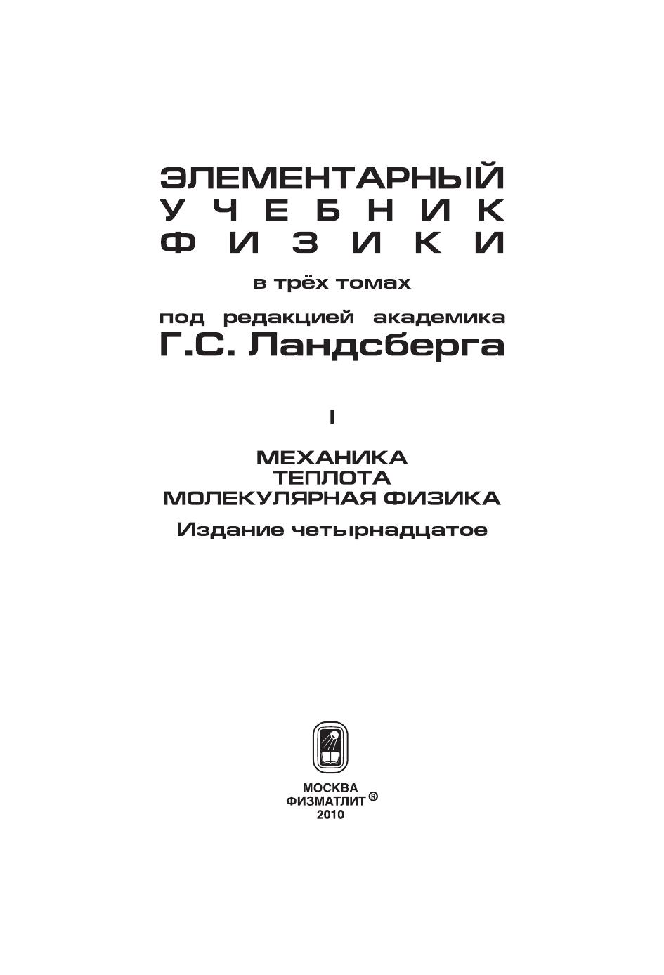 Элементарный учебник физики. В 3 т. Т. 1. Механика. Теплота. Молекулярная физика