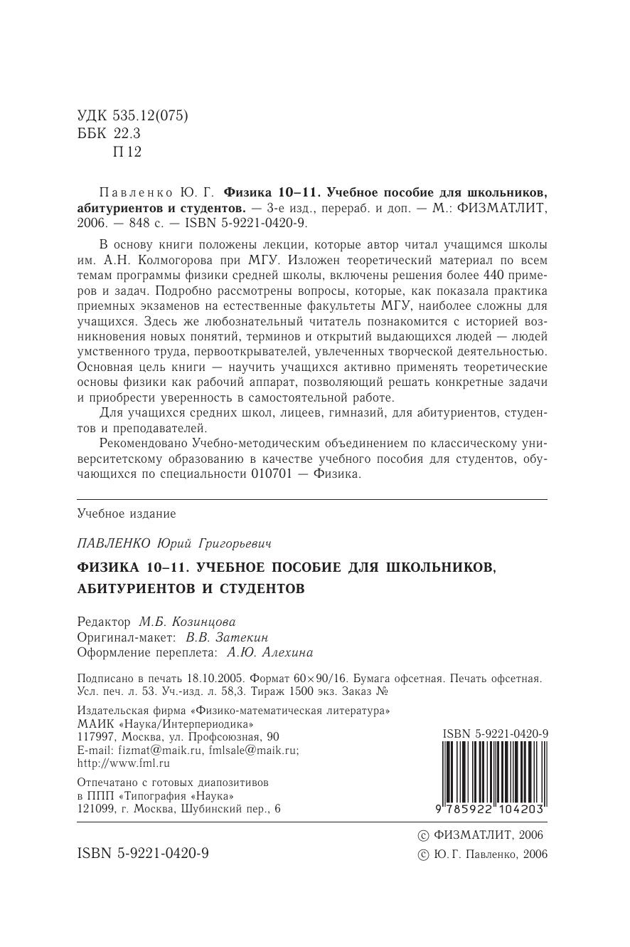 Физика 10–11. Учебное пособие для школьников, абитуриентов и студентов.