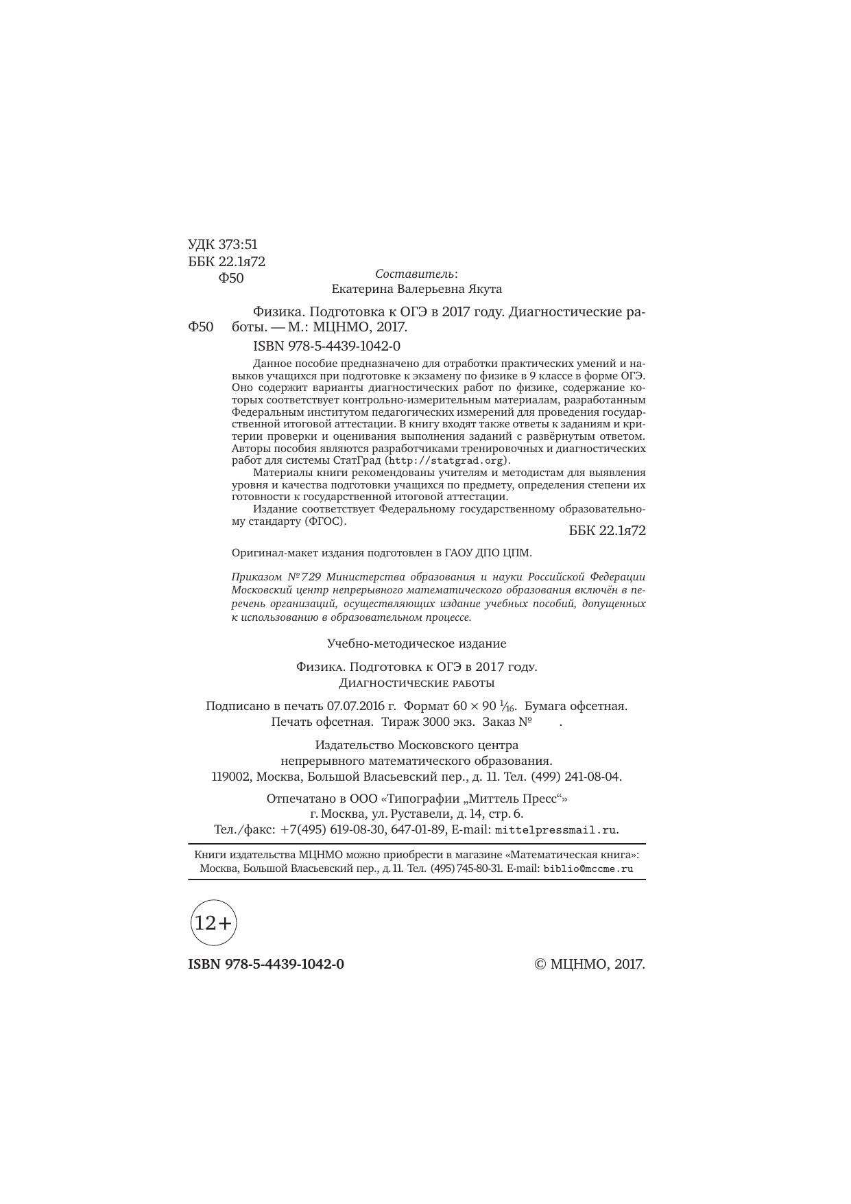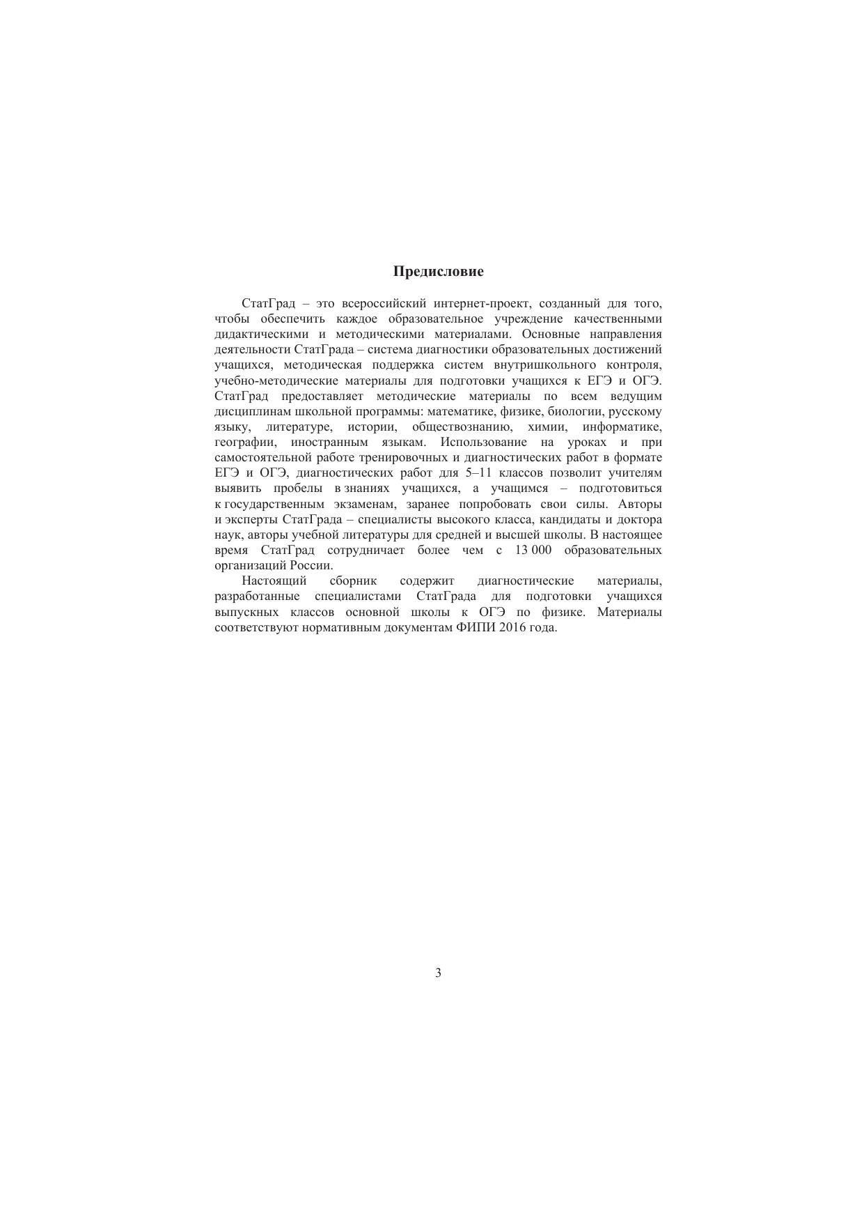 Данное пособие предназначено для отработки практических умений и навыков учащихся при подготовке к экзамену по физике в 9 классе в форме ОГЭ. Оно содержит варианты диагностических работ по физике, содержание которых соответствует контрольно-измерительным материалам, разработанным Федеральным институтом педагогических измерений для проведения государ- ственной итоговой аттестации. В книгу входят также ответы к заданиям и критерии проверки и оценивания выполнения заданий с развёрнутым ответом. Авторы пособия являются разработчиками тренировочных и диагностических работ для системы СтатГрад (http://statgrad.org).