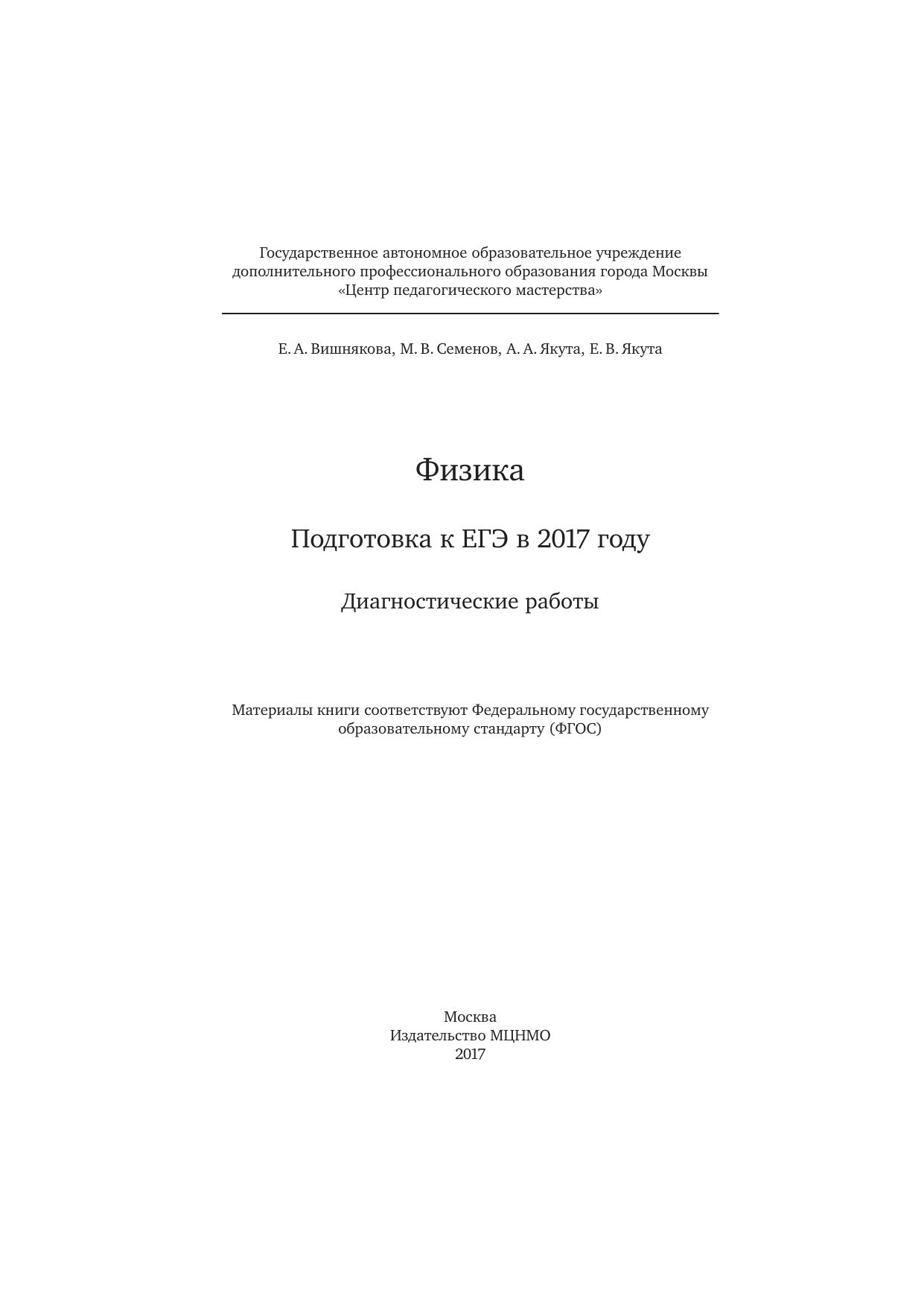 Физика. Подготовка к ЕГЭ в 2017 году. Диагностические работы