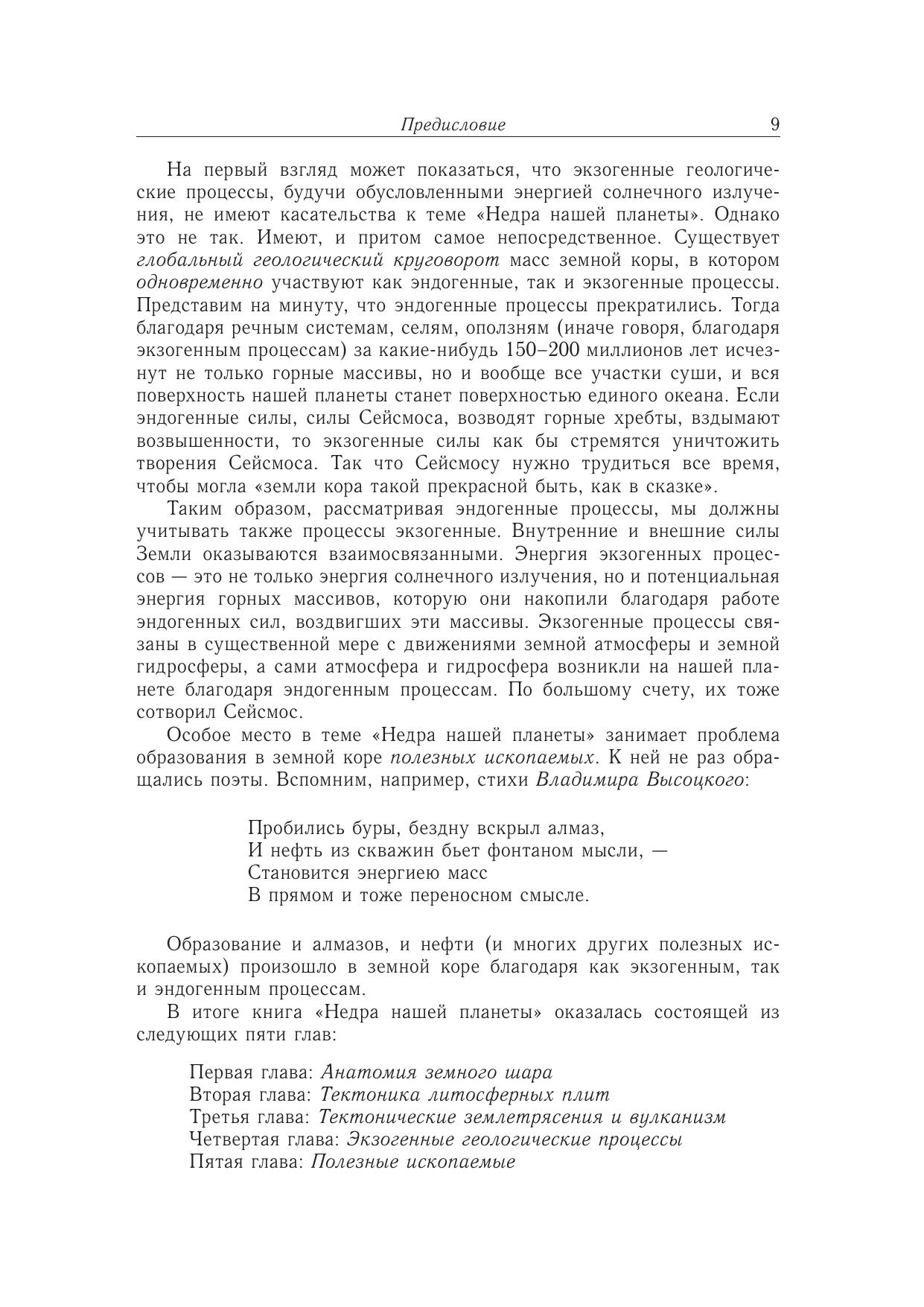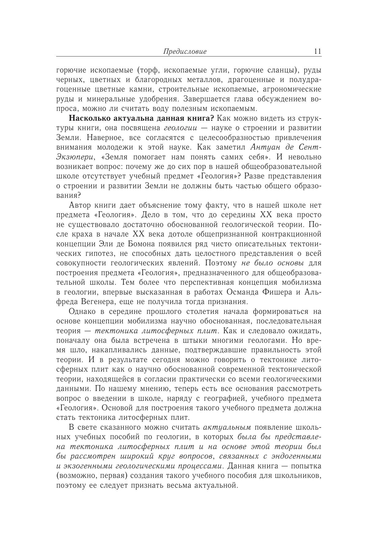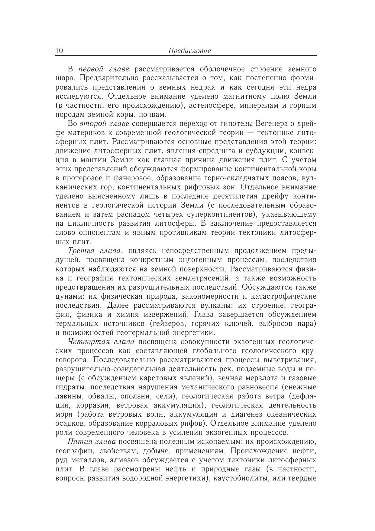 Книга идет под рубрикой «За страницами учебников физики, химии, географии». На достаточно популярном уровне систематизированно изложены основы геологии. Впервые представлена учащимся современная тектоническая теория — тектоника литосферных плит. На ее основе показаны формирование земной коры и цикличность развития литосферы (последовательное образование и затем распад четырех суперконтинентов). Описаны физика, химия, география как эндогенных процессов (землетрясений и вулканизма), так и экзогенных геологических процессов (выветривания, деятельности рек, рождения карстовых пещер, явлений в вечной мерзлоте, снежных лавин, оползней, селей, ветровой эрозии и аккумуляции, геологической деятельности моря). Отдельно рассмотрены происхождение, география, свойства различных полезных ископаемых.Может использоваться в качестве учебного пособия в 10–11 классах с профильным обучением, а также для самообразования.