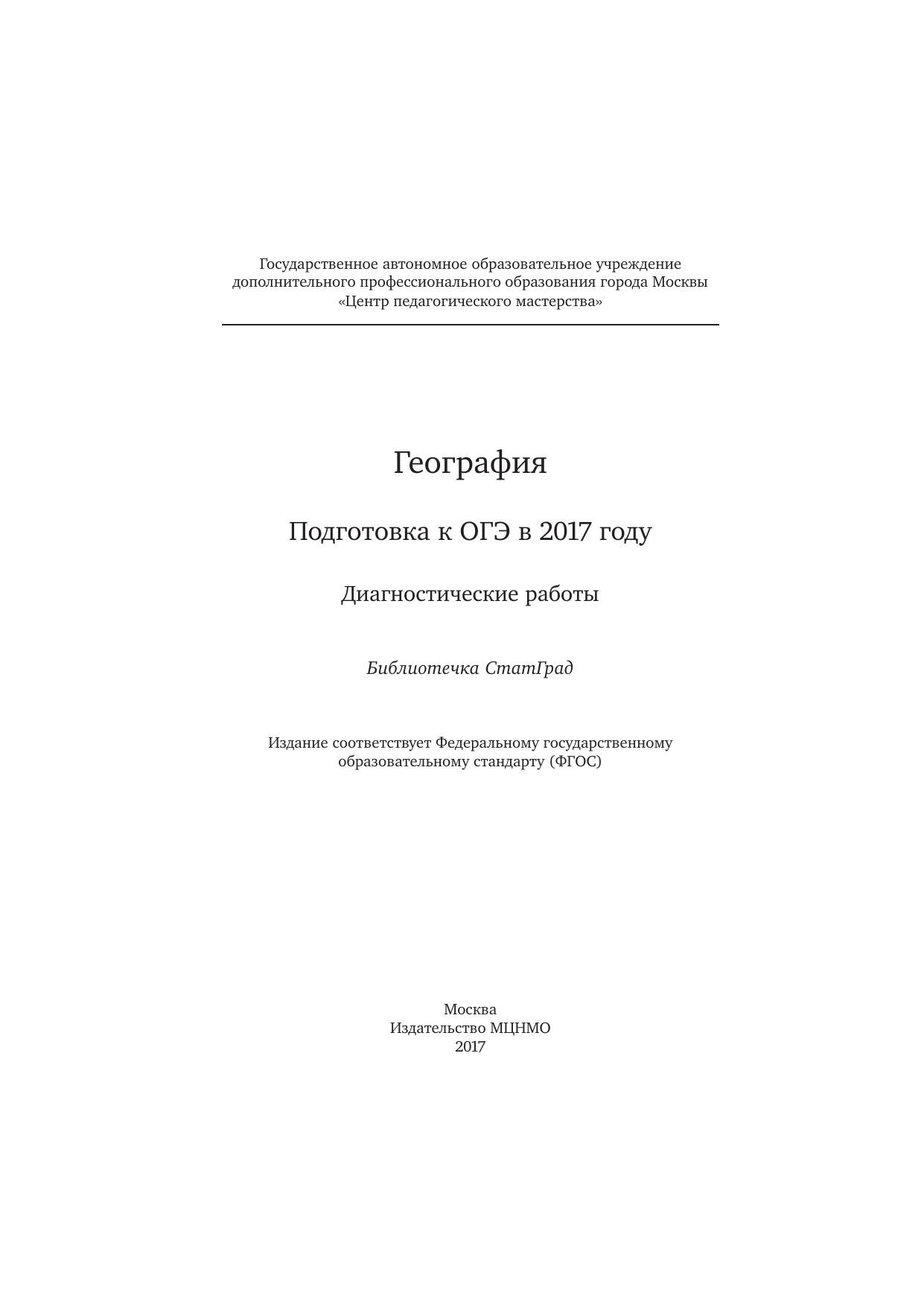 География. Подготовка к ОГЭ в 2017 году. Диагностические работы