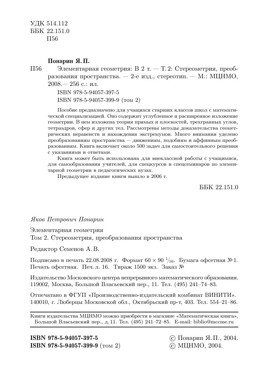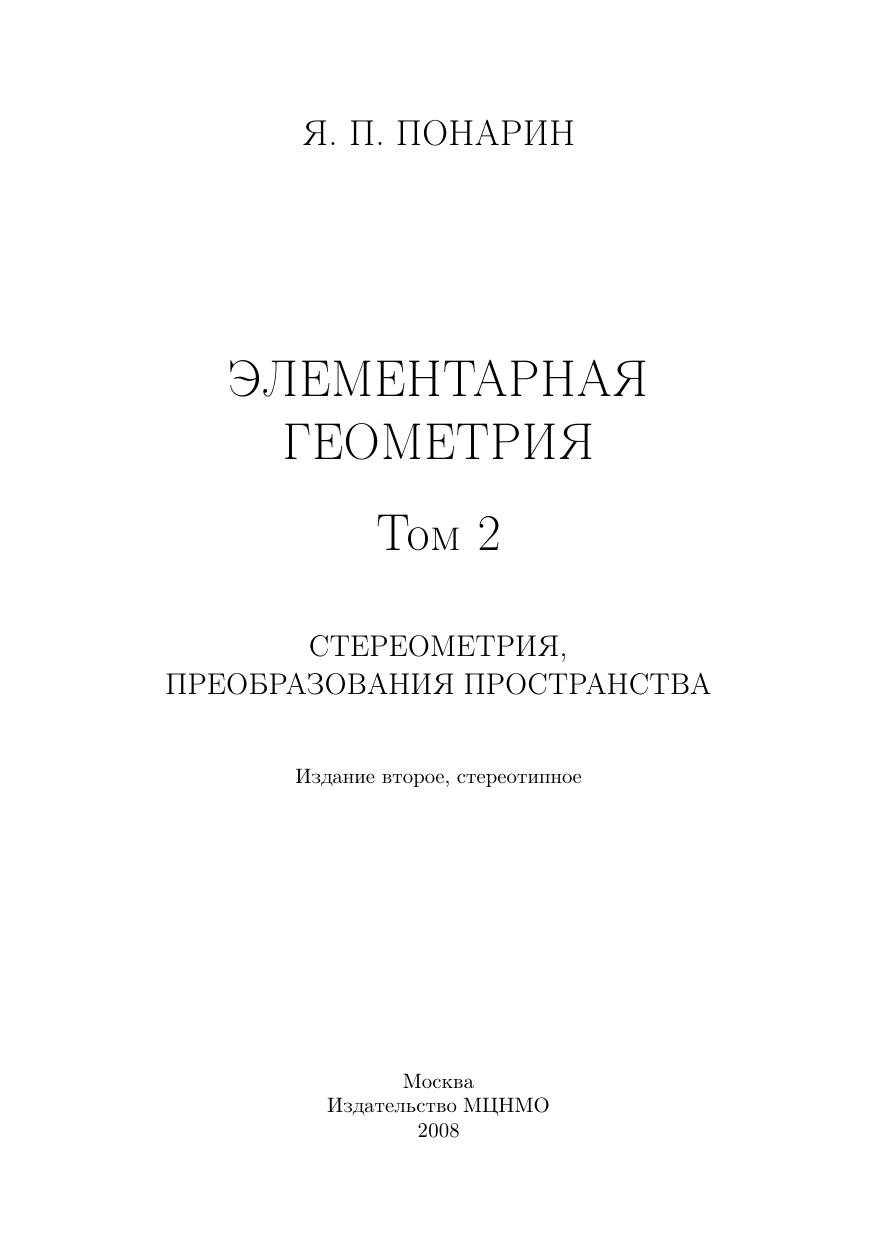 Элементарная геометрия: В 2 т. Том 2. Стереометрия, преобразования пространства