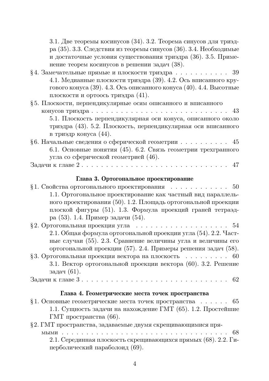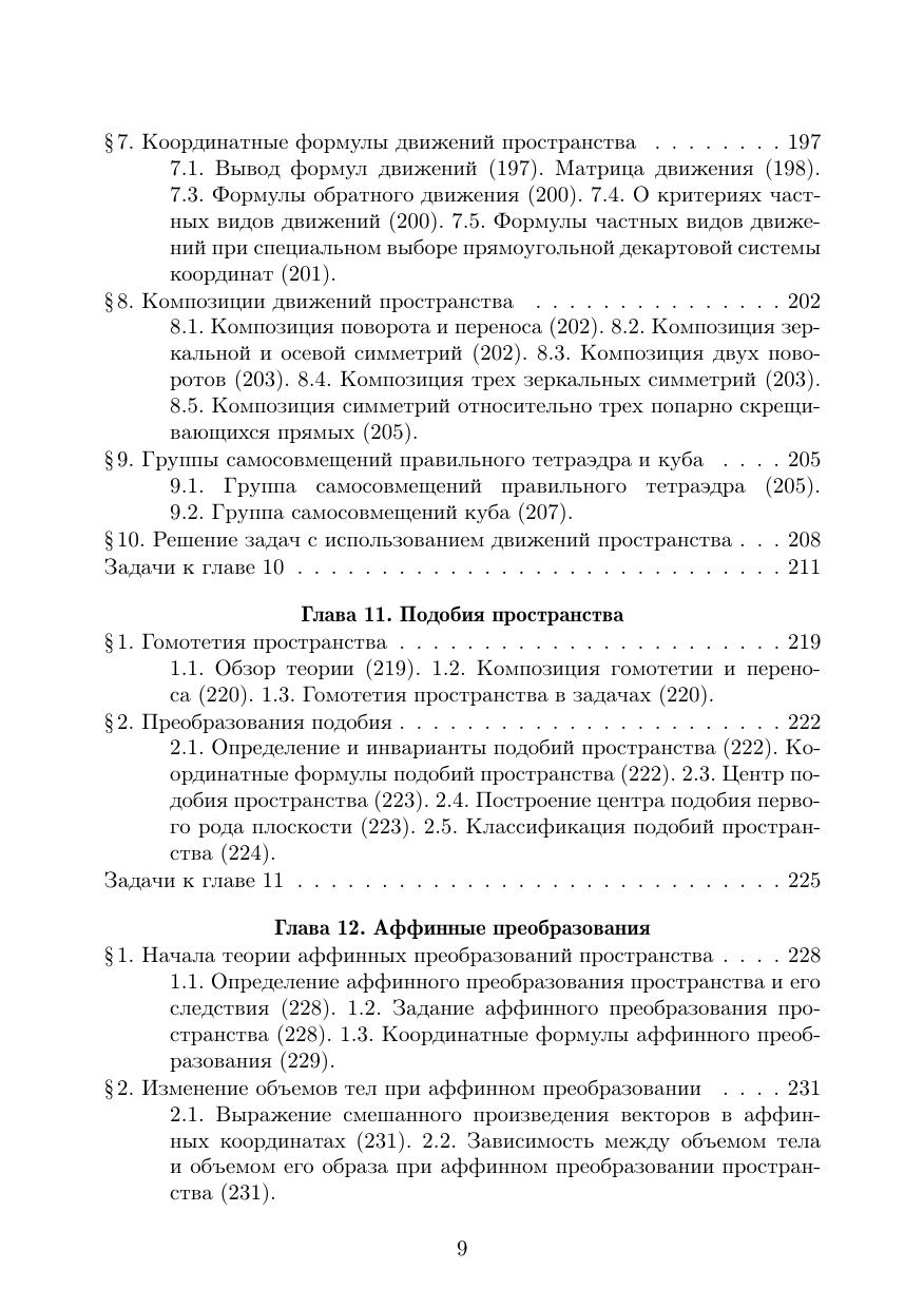 Пособие предназначено для учащихся старших классов школ с математической специализацией. Оно содержит углубленное и расширенное изложение геометрии. В нем изложена теория прямых и плоскостей, трехгранных углов, тетраэдров, сфер и других тел. Рассмотрены методы доказательства геометрических неравенств и нахождения экстремумов. Много внимания уделено преобразованиям пространства — движениям, подобиям и аффинным преобразованиям. Книга включает около 500 задач для самостоятельного решения с указаниями и ответами.Книга может быть использована для внеклассной работы с учащимися, для самообразования учителей, для спецкурсов и спецсеминаров по элементарной геометрии в педагогических вузах.Предыдущее издание книги вышло в 2006 г.