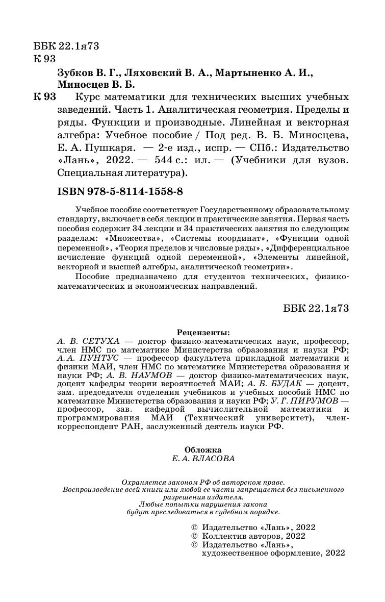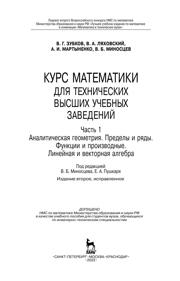 Курс математики для технических высших учебных заведений. Часть 1. Аналитическая геометрия. Пределы и ряды. Функции и производные. Линейная и векторная алгебра