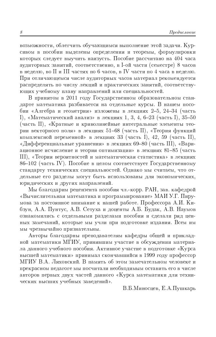 Учебное пособие соответствует Государственному образовательному стандарту, включает в себя лекции и практические занятия. Первая часть пособия содержит 34 лекции и 34 практических занятия по следующим разделам: «Множества», «Системы координат», «Функции одной переменной», «Теория пределов и числовые ряды», «Дифференциальное исчисление функций одной переменной», «Элементы линейной, векторной и высшей алгебры, аналитической геометрии». Пособие предназначено для студентов технических, физико-математических и экономических направлений.