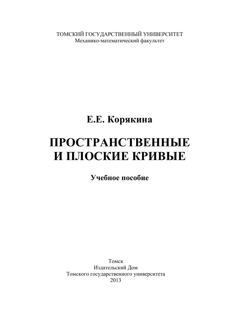 Данное пособие разработано к курсу «Дифференциальная геометрия» для студентов второго и третьего курсов механико-математического факультета.