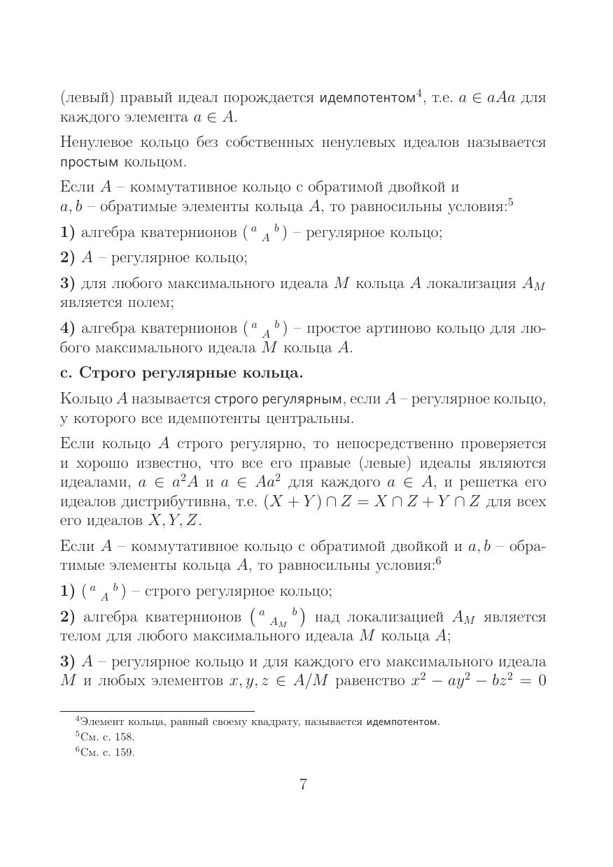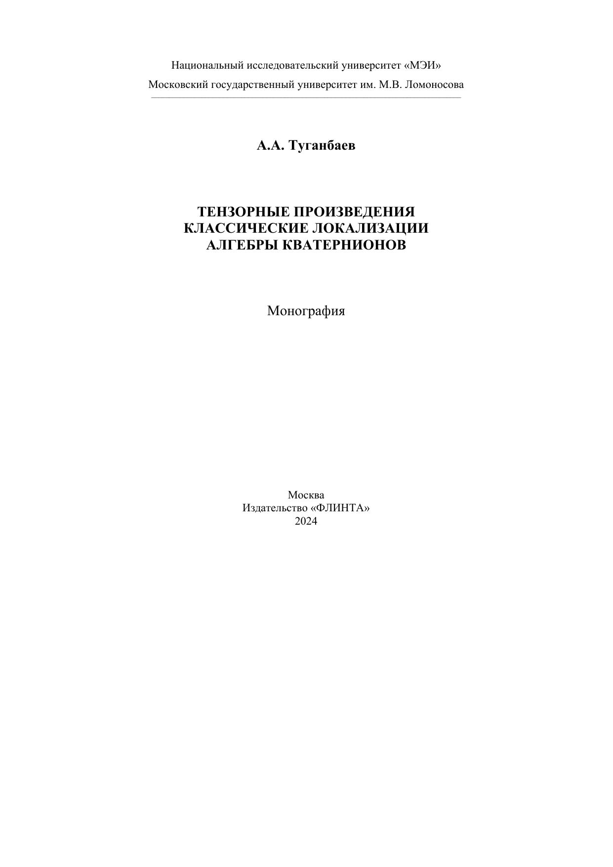 В данной книге исследуются свойства тензорных произведений модулей, классических локализаций колец A и кольцевые свойства (обобщенных) алгебр кватернионов (aAb) над произвольными коммутативными кольцами A с обратимыми элементами a, b.