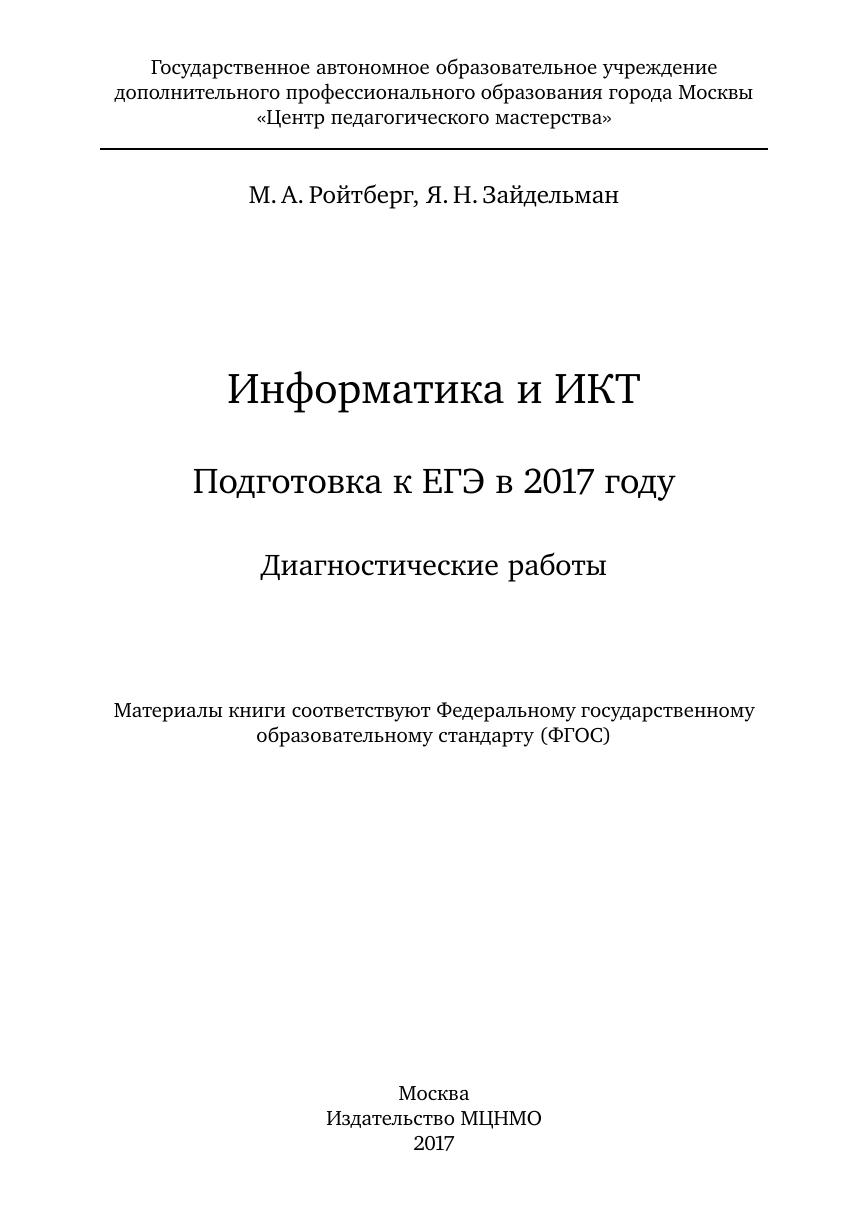 Информатика и ИКТ. Подготовка к ЕГЭ в 2017 году. Диагностические работы