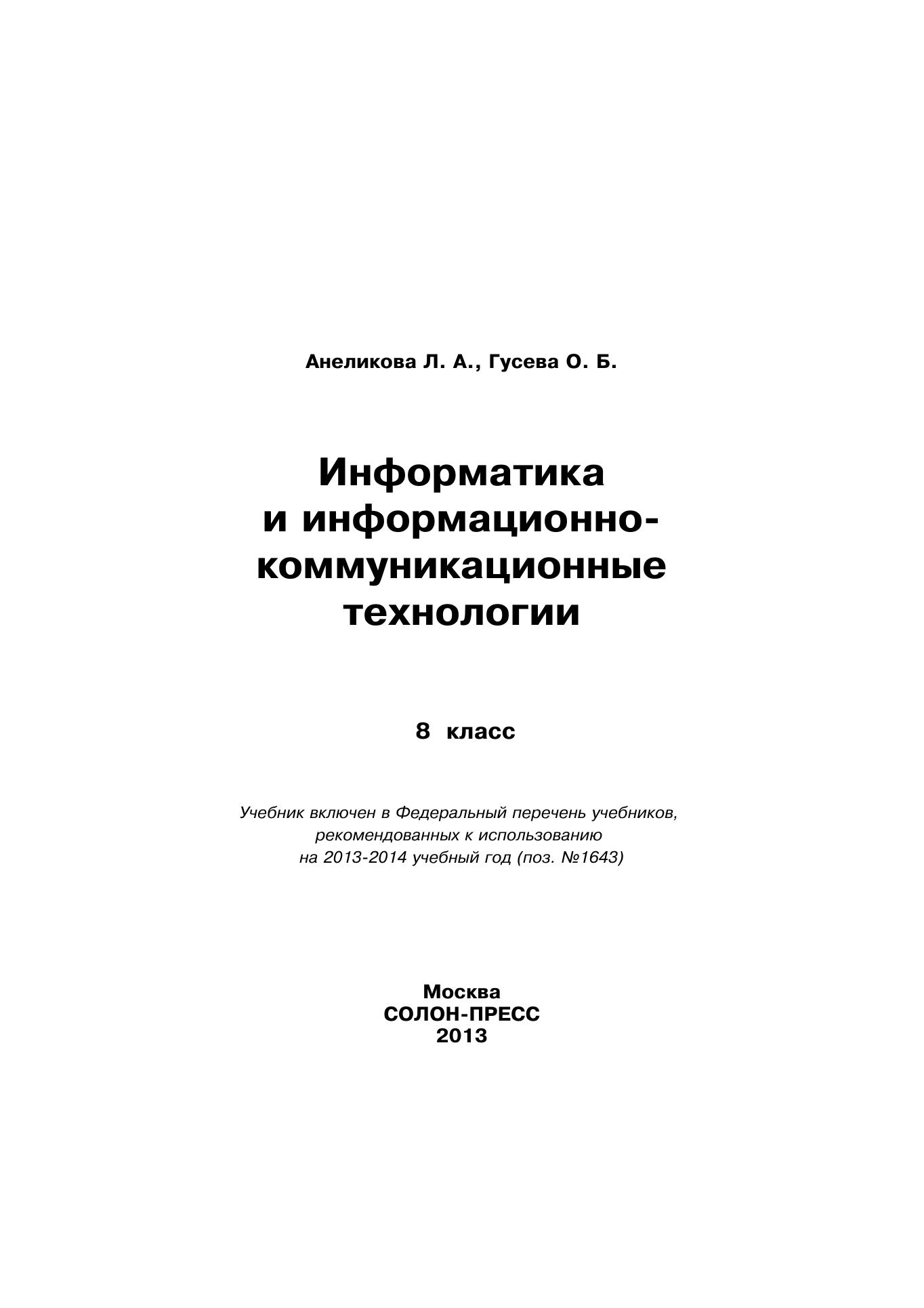 Информатика и информационно-коммуникационные технологии. Базовый курс. 8 класс