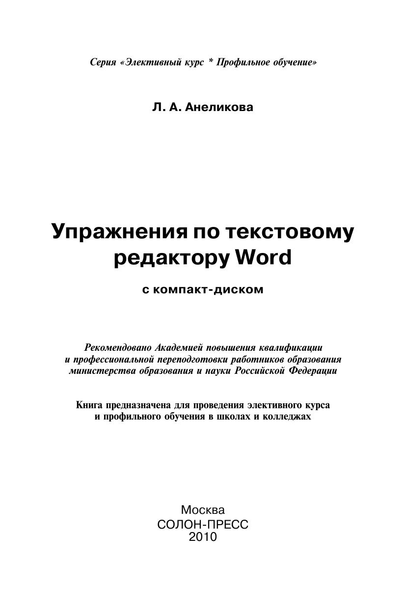 Упражнения по текстовому редактору Word Анеликова Л.А.