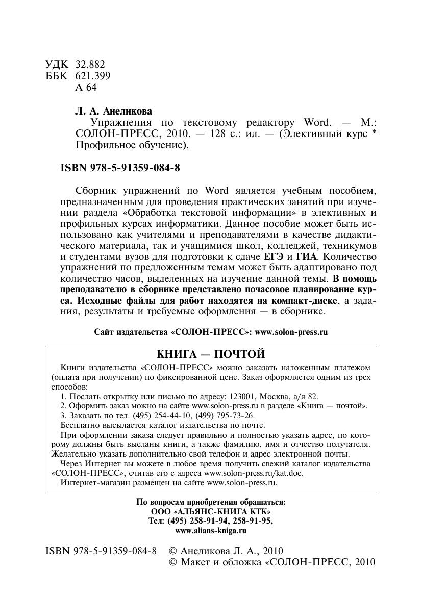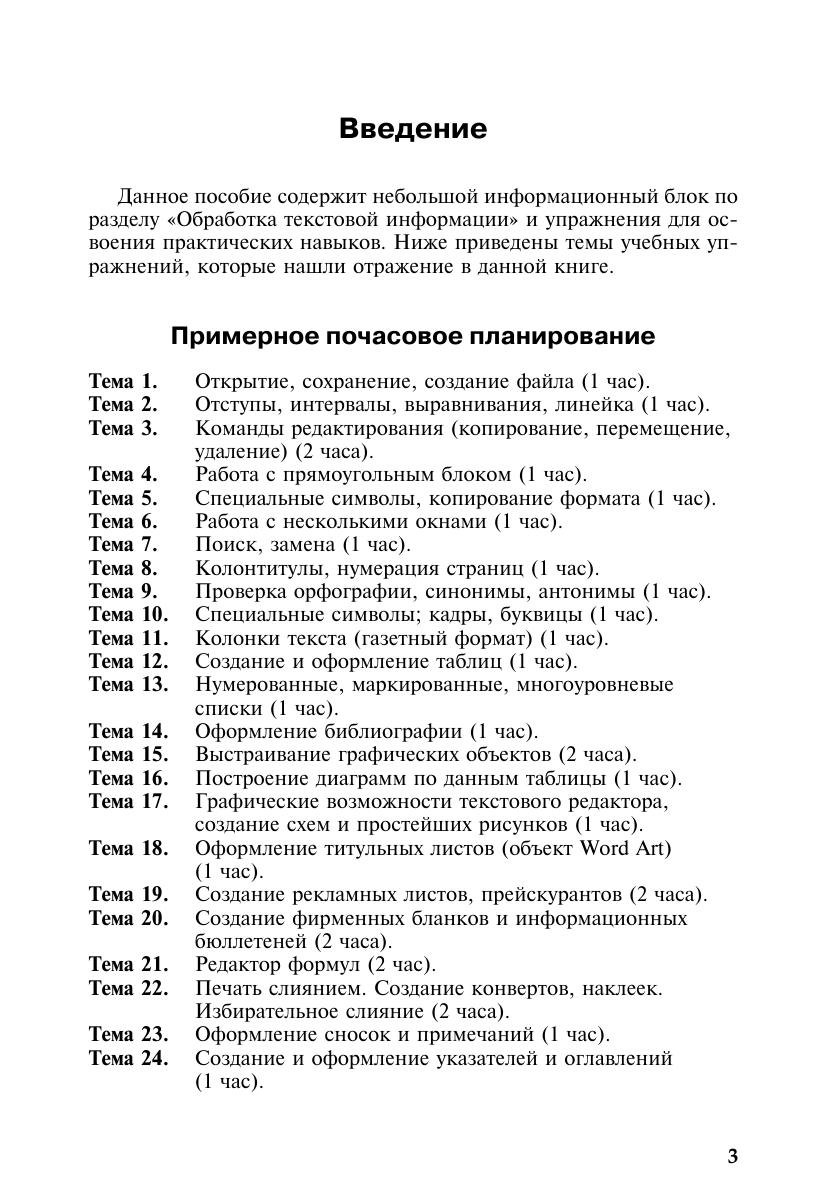Сборник упражнений по Word является учебным пособием, предназначенным для проведения практических занятий при изучении раздела «Обработка текстовой информации» в элективных и профильных курсах информатики. Данное пособие может быть использовано как учителями и преподавателями в качестве дидактического материала, так и учащимися школ, колледжей, техникумов и студентами вузов для подготовки к сдаче ЕГЭ и ГИА. Количество упражнений по предложенным темам может быть адаптировано под количество часов, выделенных на изучение данной темы.