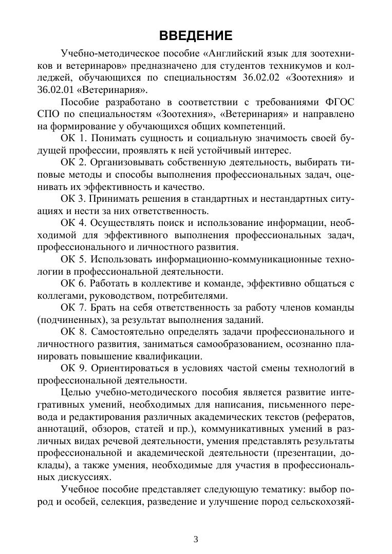 Особенностью данного учебного пособия является то, что оно тщательно и планомерно готовит обучающихся к будущей профессиональной деятельности. В нем есть задания как обязательного порогового уровня, так и повышенного уровня сложности. В каждом разделе есть текст и послетекстовые упражения, направленные на повышение уровней владения иноязычной профессиональной компетенцией в рамках сельскохозяйственной тематики. В пособии также есть приложения, в которых даны примеры и схемы англоязычных научных статей, резюме, ссылки на интернетсайты для тех, кто будет готов расширять свои профессиональные знания самостоятельно. Соответствует современным требованиям Федерального государственного образовательного стандарта среднего профессионального образования и профессиональным квалификационным требованиям. Учебное пособие предназначено для студентов, обучающихся в средних профессиональных образовательных организациях сельскохозяйственного профиля и изучающих английский язык в рамках профессиональной подготовки по направлениям «Зоотехния» и «Ветеринария».