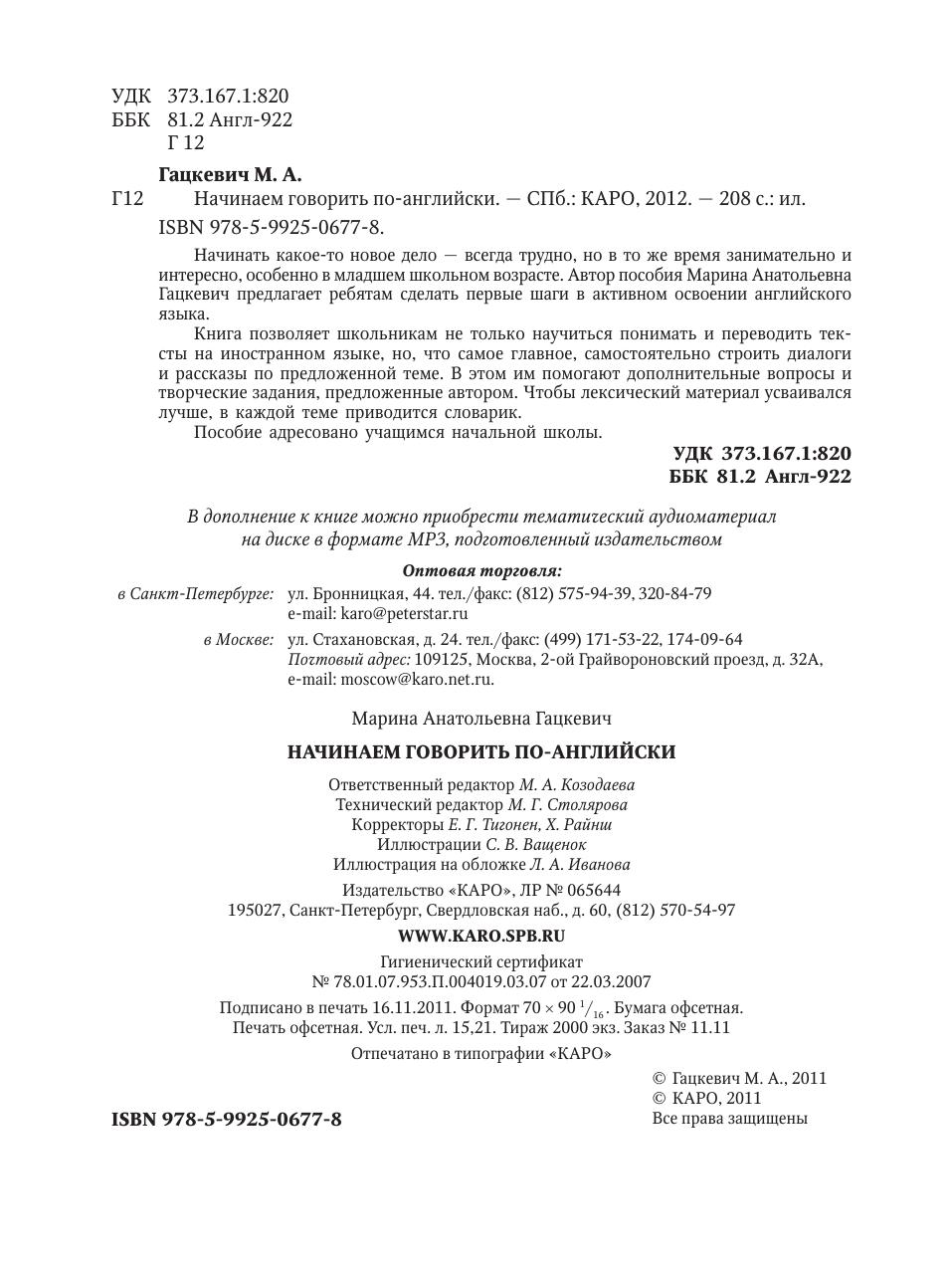 Начинать какое-то новое дело — всегда трудно, но в то же время занимательно и интересно, особенно в младшем школьном возрасте. Автор пособия Марина Анатольевна Гацкевич предлагает ребятам сделать первые шаги в активном освоении английского языка. Книга позволяет школьникам не только научиться понимать и переводить тексты на иностранном языке, но, что самое главное, самостоятельно строить диалоги и рассказы по предложенной теме. В этом им помогают дополнительные вопросы и творческие задания, предложенные автором. Чтобы лексический материал усваивался лучше, в каждой теме приводится словарик. Пособие адресовано учащимся начальной школы.