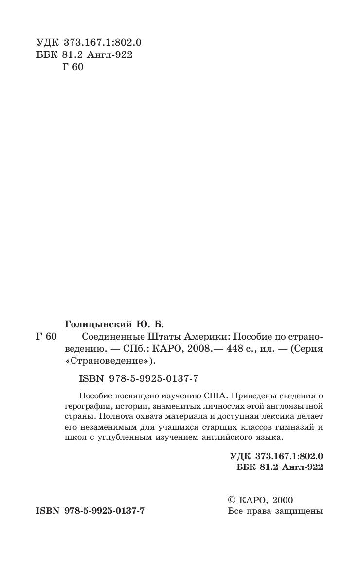 Пособие посвящено изучению США. Приведены сведения о герографии, истории, знаменитых личностях этой англоязычной страны. Полнота охвата материала и доступная лексика делает его незаменимым для учащихся старших классов гимназий и школ с углубленным изучением английского языка.