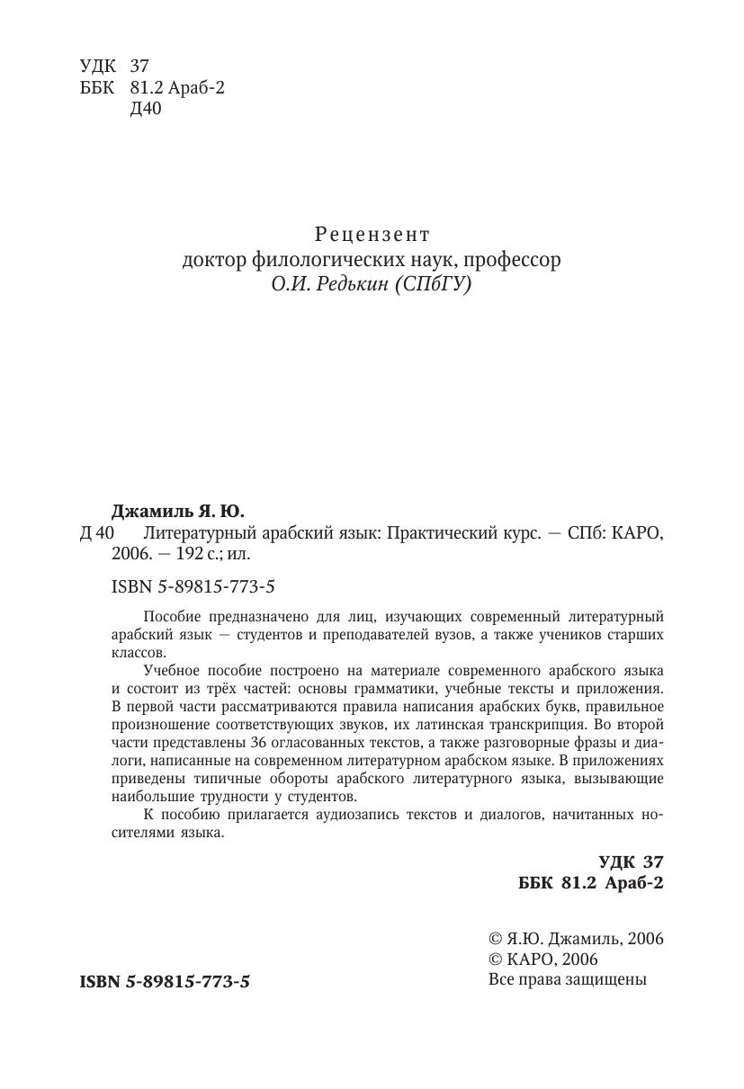 Пособие предназначено для лиц, изучающих современный литературный арабский язык — студентов и преподавателей вузов, а также учеников старших классов.