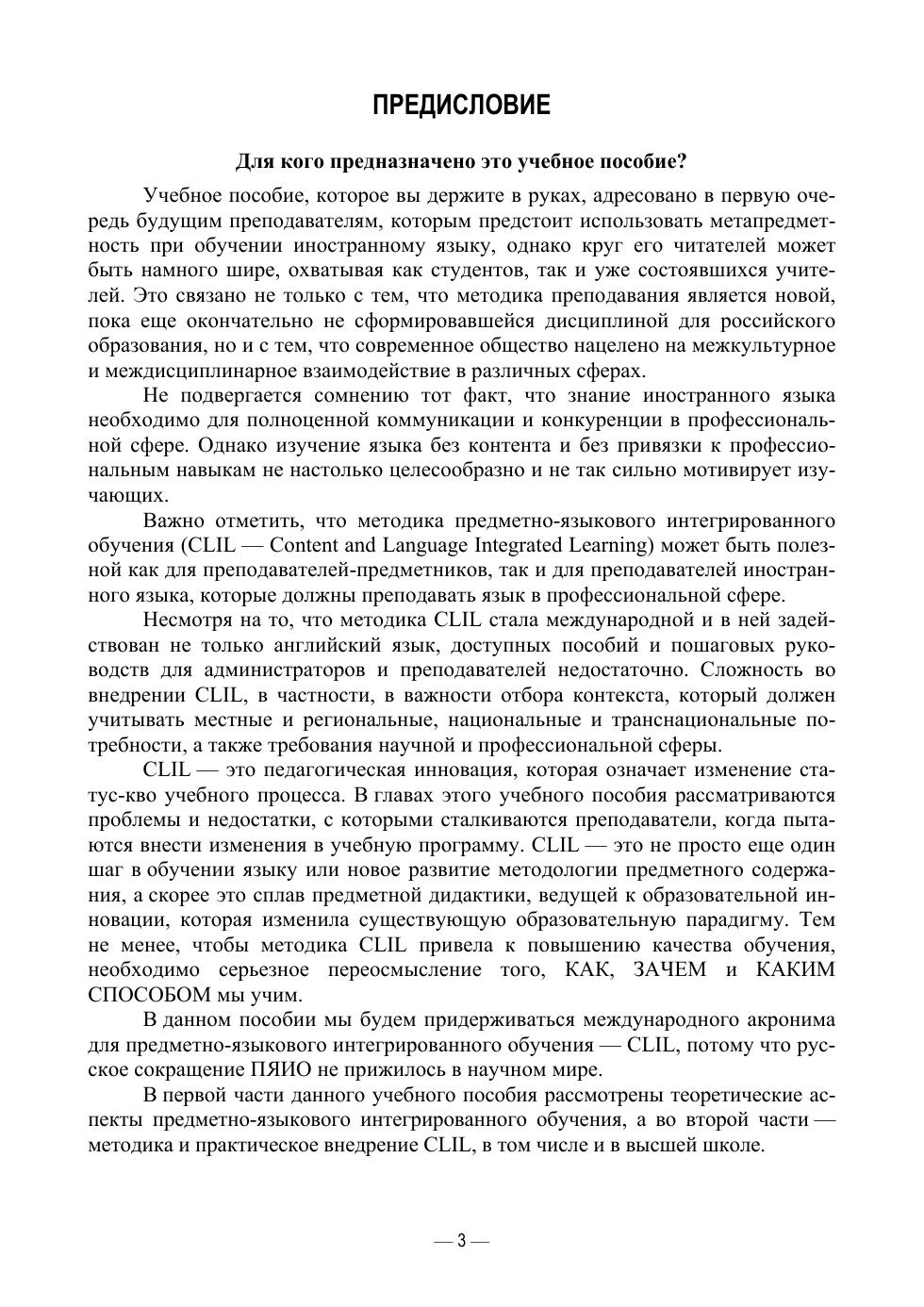 Цель настоящего пособия — познакомить бакалавров, магистрантов и аспирантов с основными элементами и стратегиями предметно-языкового интегрированного обучения, широко распространенном в мировом образовательном сообществе под аббревиатурой CLIL. В пособии объясняется важность внедрения этой новой для России методики обучения не только на уровне общего образования, но и в высшей школе. Особое внимание уделяется как теории, так и практике внедрения CLIL, описываются положительные моменты и возможные проблемы. Все теоретические положения сопровождаются конкретными примерами и заданиями, направленными на формирование необходимых компетенций будущих преподавателей. Пособие предназначено в первую очередь для студентов педагогических вузов и филологических факультетов университетов. Но также будет оценено преподавателями этих вузов, готовыми использовать передовые мировые технологии для обучения студентов иностранным языкам и актуальным проблемам культурологии и регионоведения.