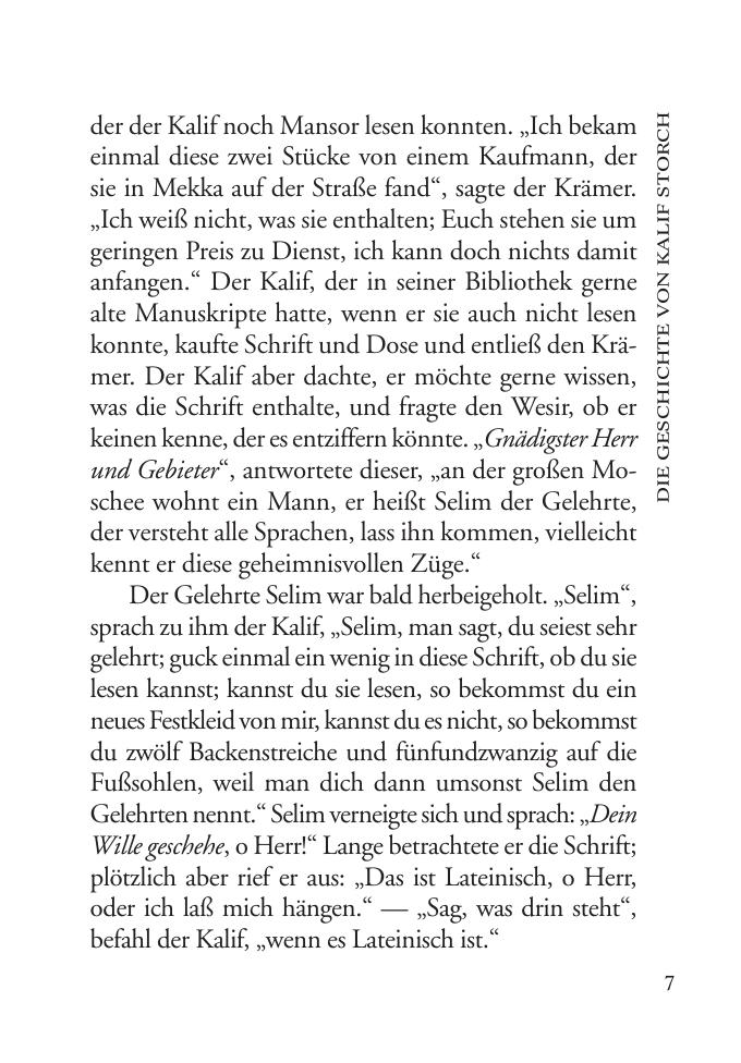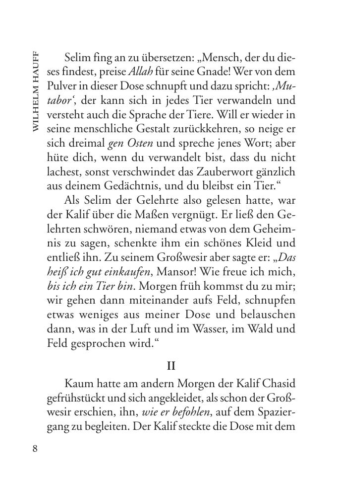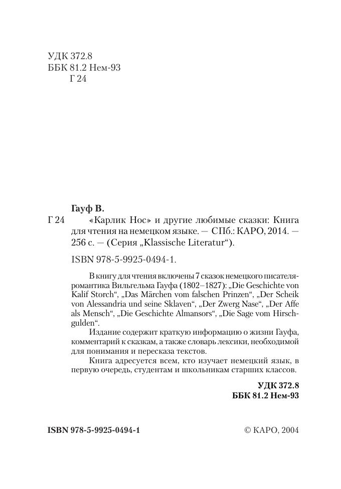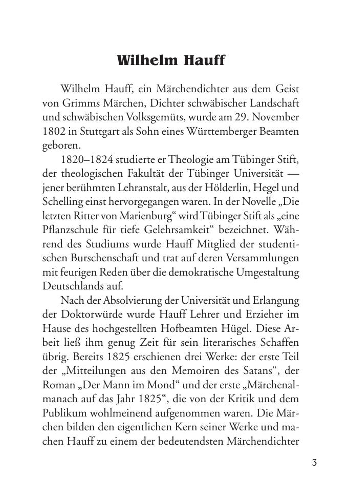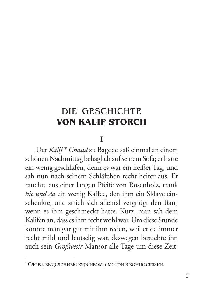 В книгу для чтения включены 7 сказок немецкого писателя-романтика Вильгельма Гауфа (1802–1827): „Die Geschichte von Kalif Storch“, „Das Mдrchen vom falschen Prinzen“, „Der Scheik von Alessandria und seine Sklaven“, „Der Zwerg Nase“, „Der Affe als Mensch“, „Die Geschichte Almansors“, „Die Sage vom Hirschgulden“. Издание содержит краткую информацию о жизни Гауфа, комментарий к сказкам, а также словарь лексики, необходимой для понимания и пересказа текстов. Книга адресуется всем, кто изучает немецкий язык, в первую очередь, студентам и школьникам старших классов.