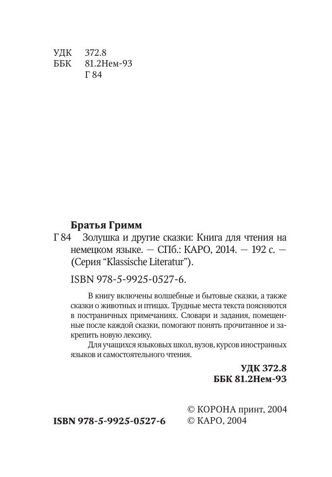 В книгу включены волшебные и бытовые сказки, а также сказки о животных и птицах. Трудные места текста поясняются в постраничных примечаниях. Словари и задания, помещенные после каждой сказки, помогают понять прочитанное и закрепить новую лексику. Для учащихся языковых школ, вузов, курсов иностранных языков и самостоятельного чтения.