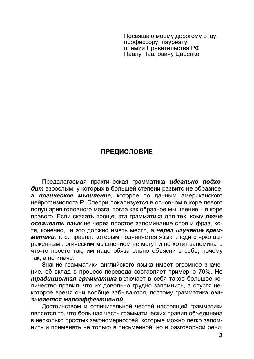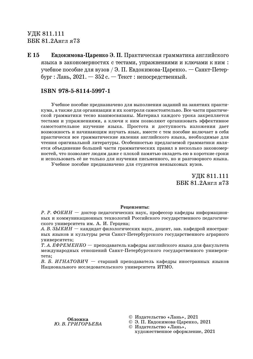 Учебное пособие предназначено для выполнения заданий на занятиях практикума, а также для организации и их контроля самостоятельно. Все части практической грамматики тесно взаимосвязаны. Материал каждого урока закрепляется тестами и упражнениями, а ключи к ним позволяют организовать эффективное самостоятельное изучение языка. Простота и доступность изложения дает возможность и начинающим изучать язык, вместе с тем пособие включает в себя практически все грамматические явления английского языка, необходимые для чтения оригинальной литературы. Особенностью предлагаемой грамматики является объединение большей часть грамматических правил в несколько закономерностей, что позволяет людям даже с плохой памятью овладеть ею в короткие сроки и использовать её не только для изучения письменного, но и разговорного языка. Учебное пособие предназначено для студентов неязыковых вузов.